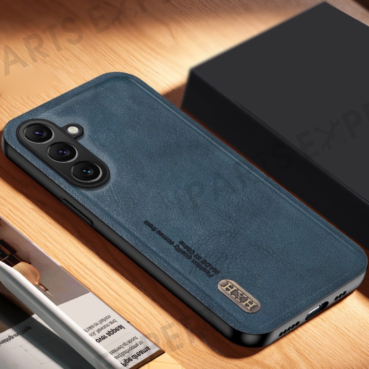For Samsung Galaxy F15 5G Matte Phone Case TPU+PU Phone Cover Work with Magnetic Car Holder - Blue