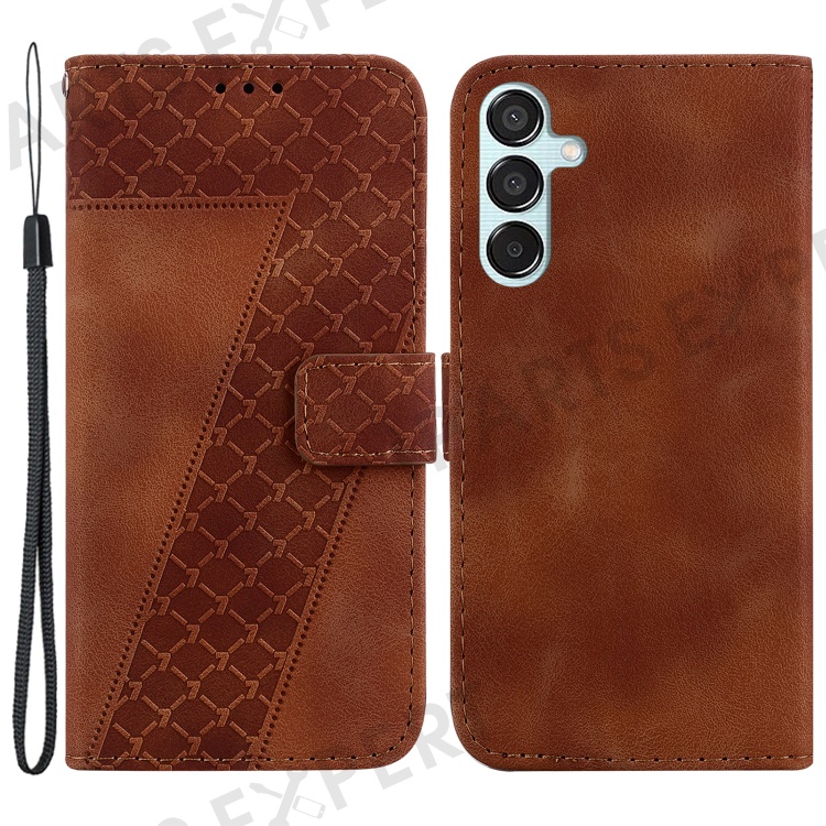 For Samsung Galaxy M15 5G / F15 5G Case Leather Wallet Stand Cover Imprint 7-Shape - Brown