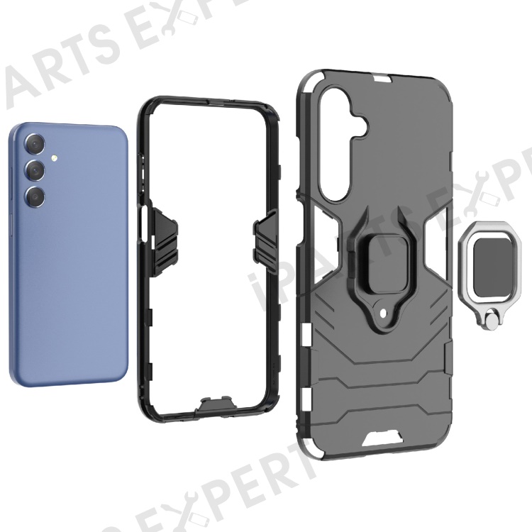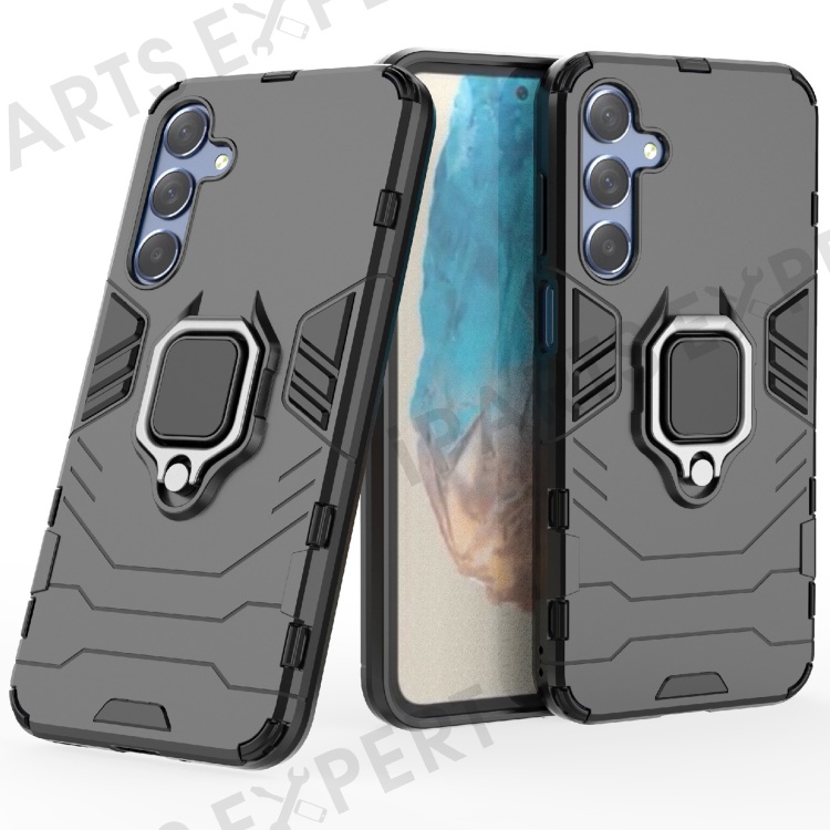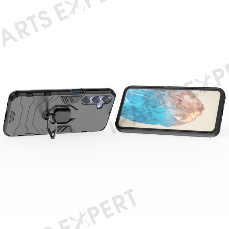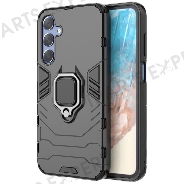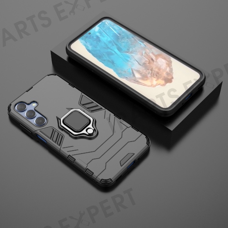 For Samsung Galaxy M35 5G Case Ring Kickstand PC+TPU Protective Phone Cover - Black