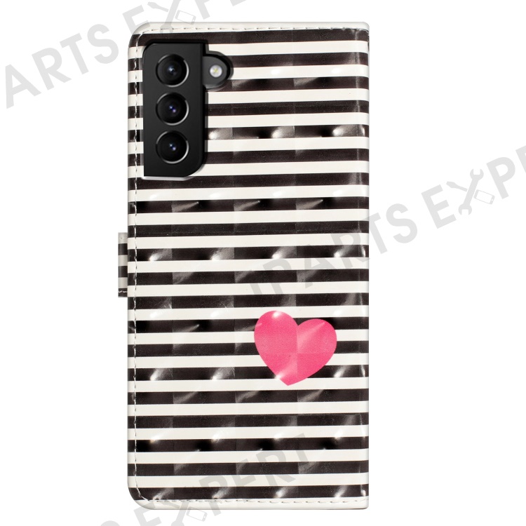 For Samsung Galaxy S22 5G Case PU Leather 3D Pattern Print Phone Stand Cover - Stripes / Heart