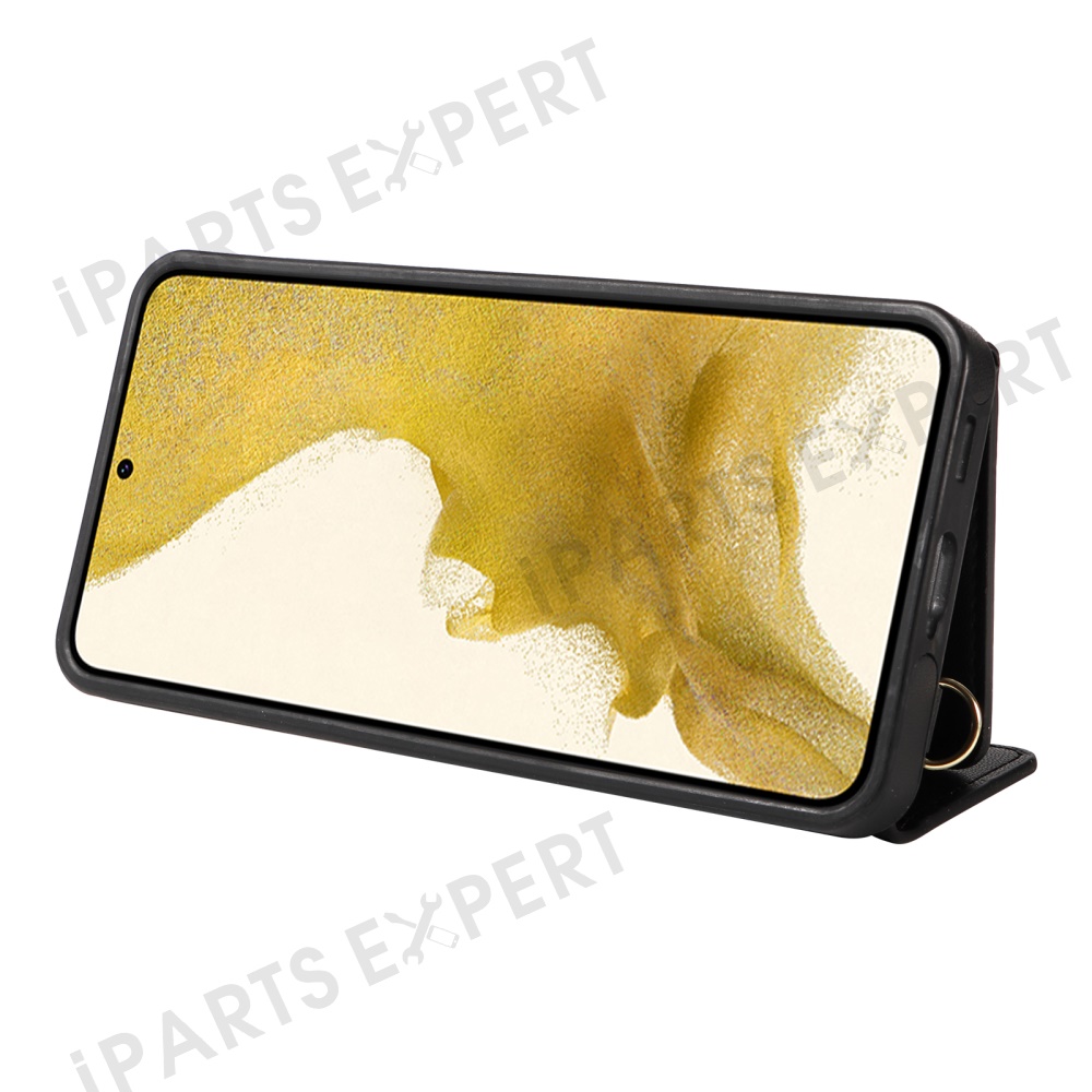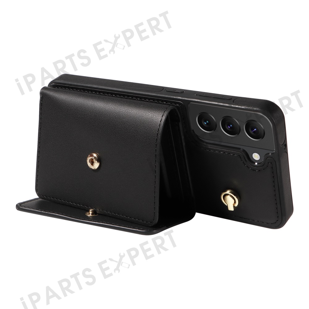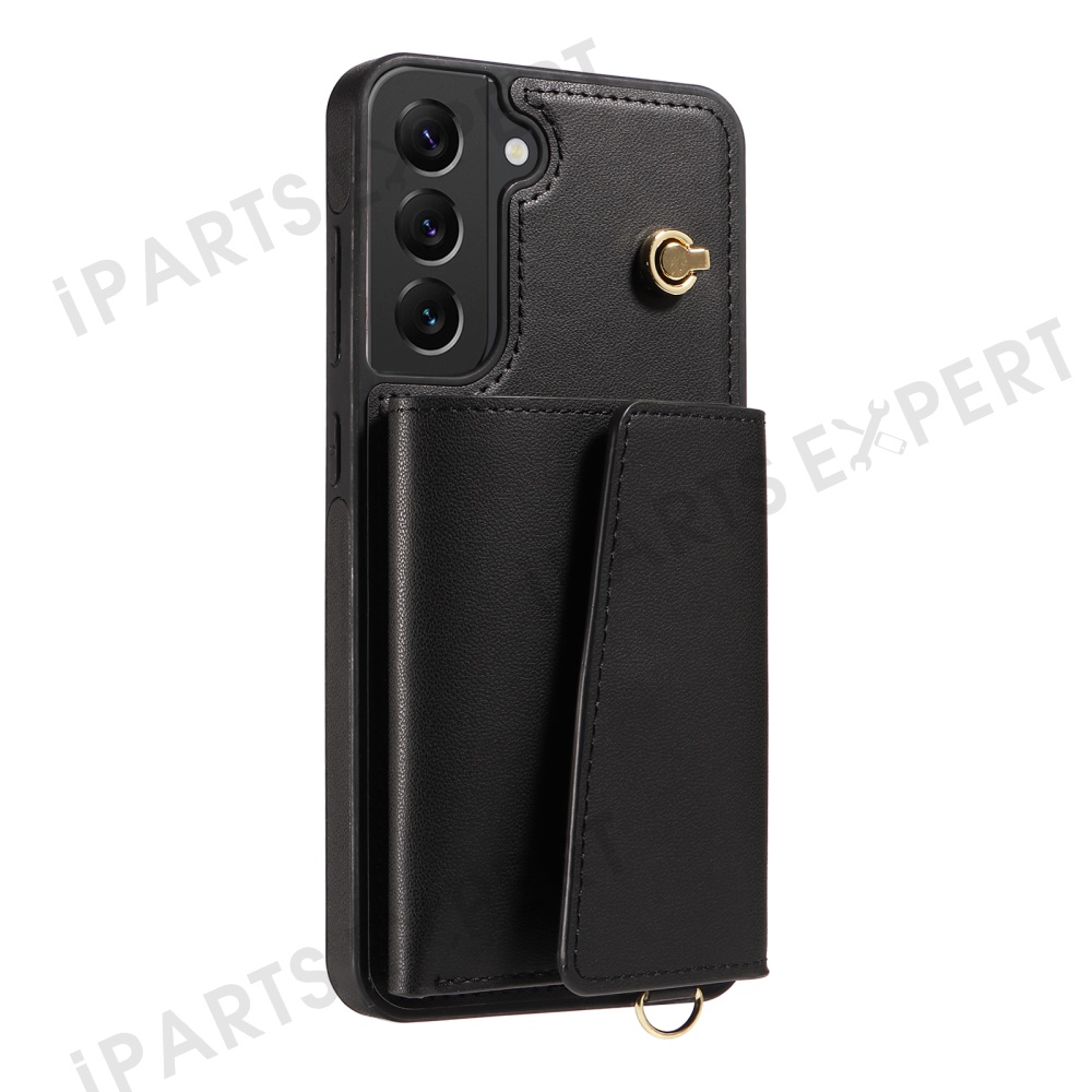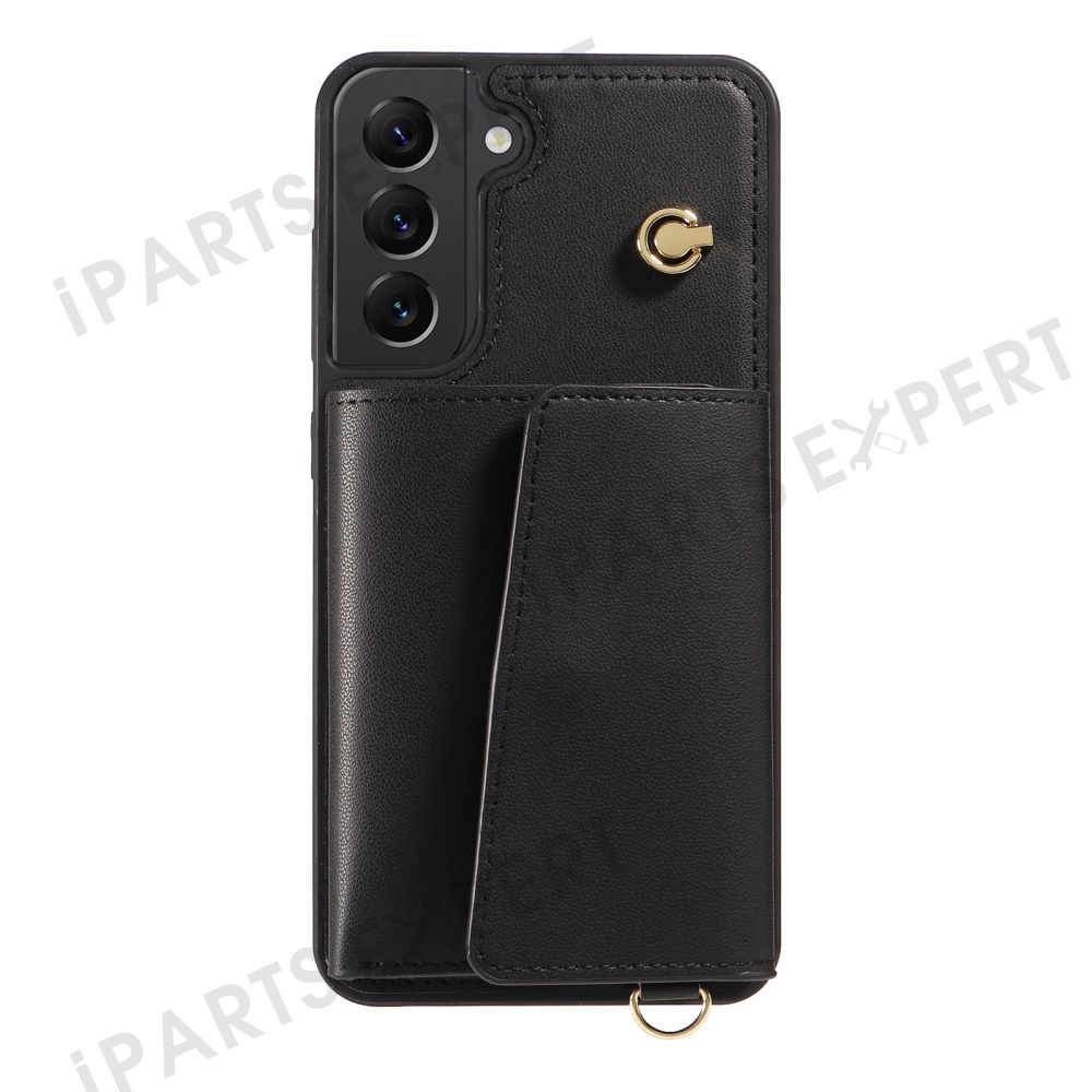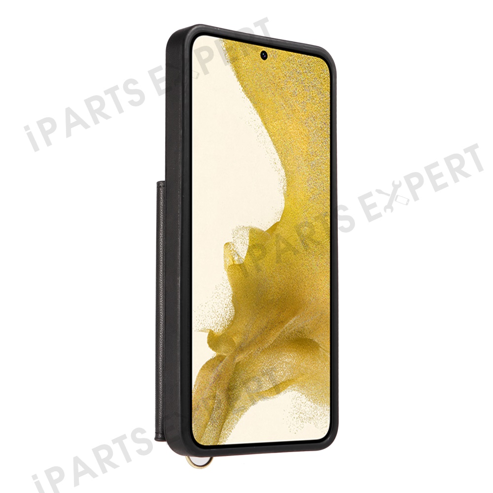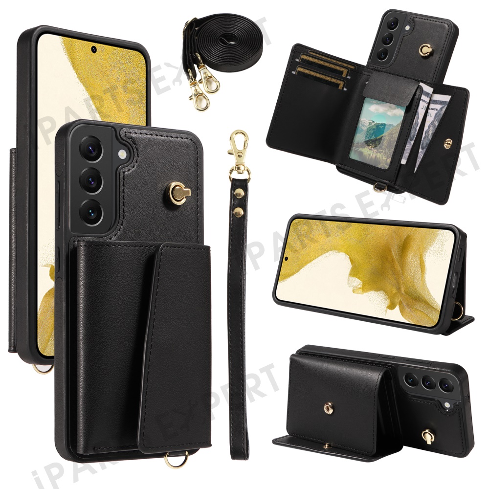 For Samsung Galaxy S22+ 5G Crossbody Phone Case Card Holder Kickstand Leather Coated TPU Mobile Cover - Black