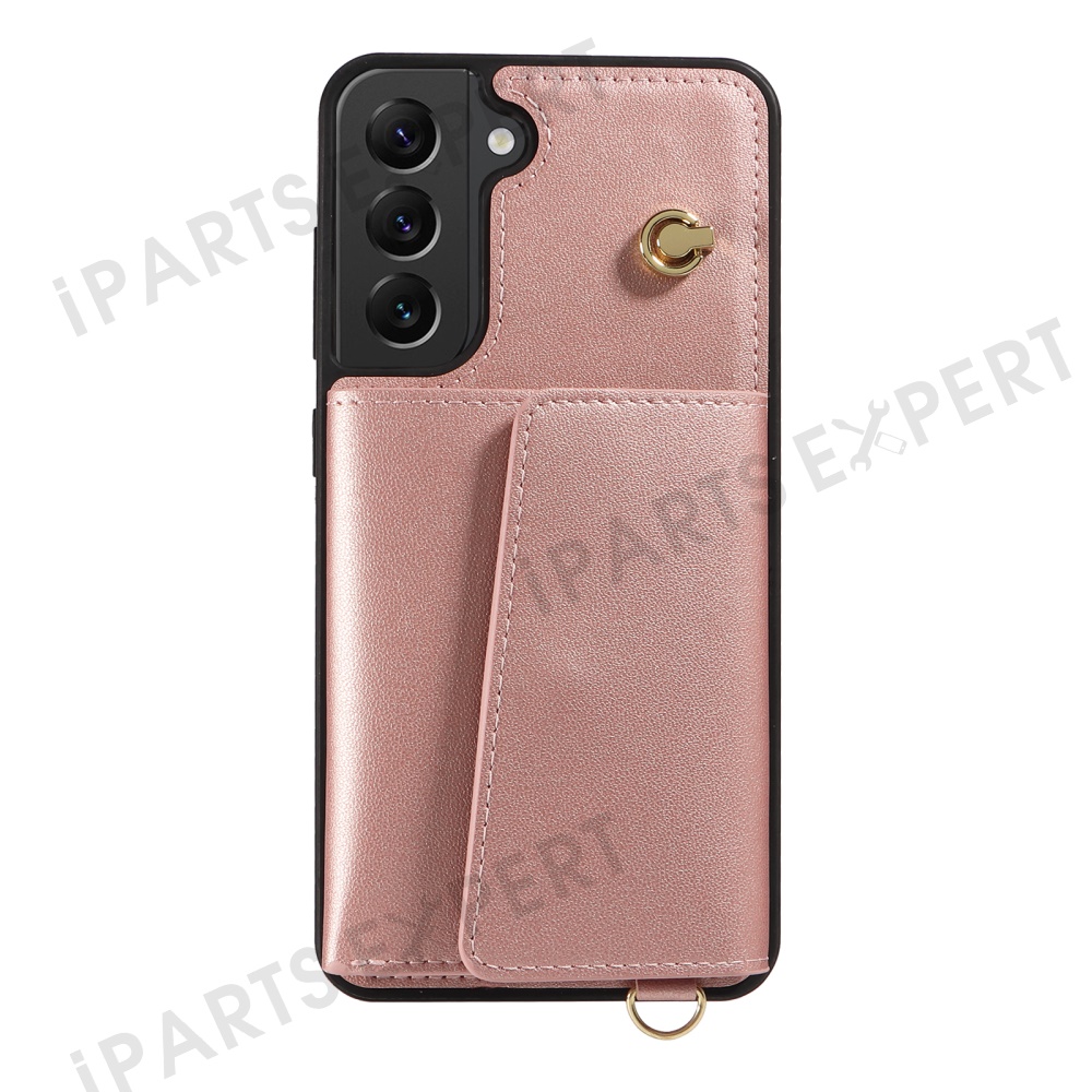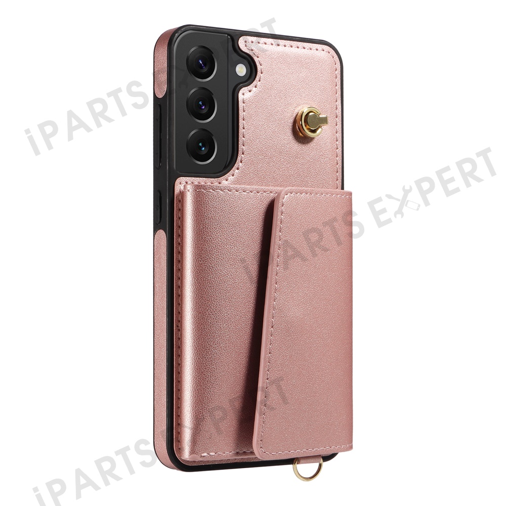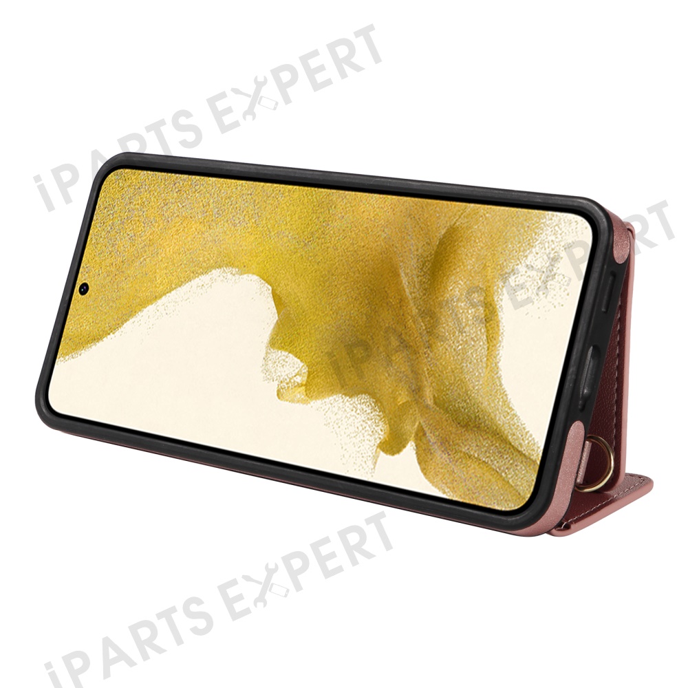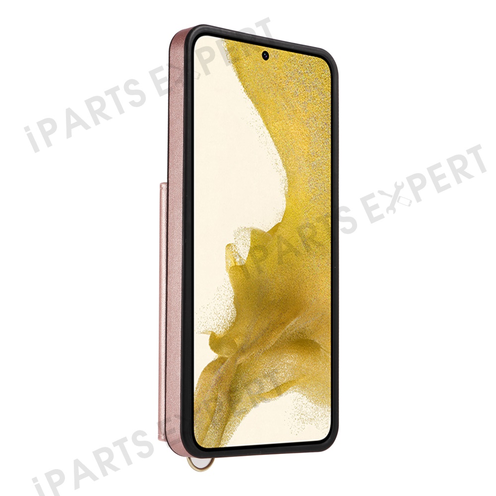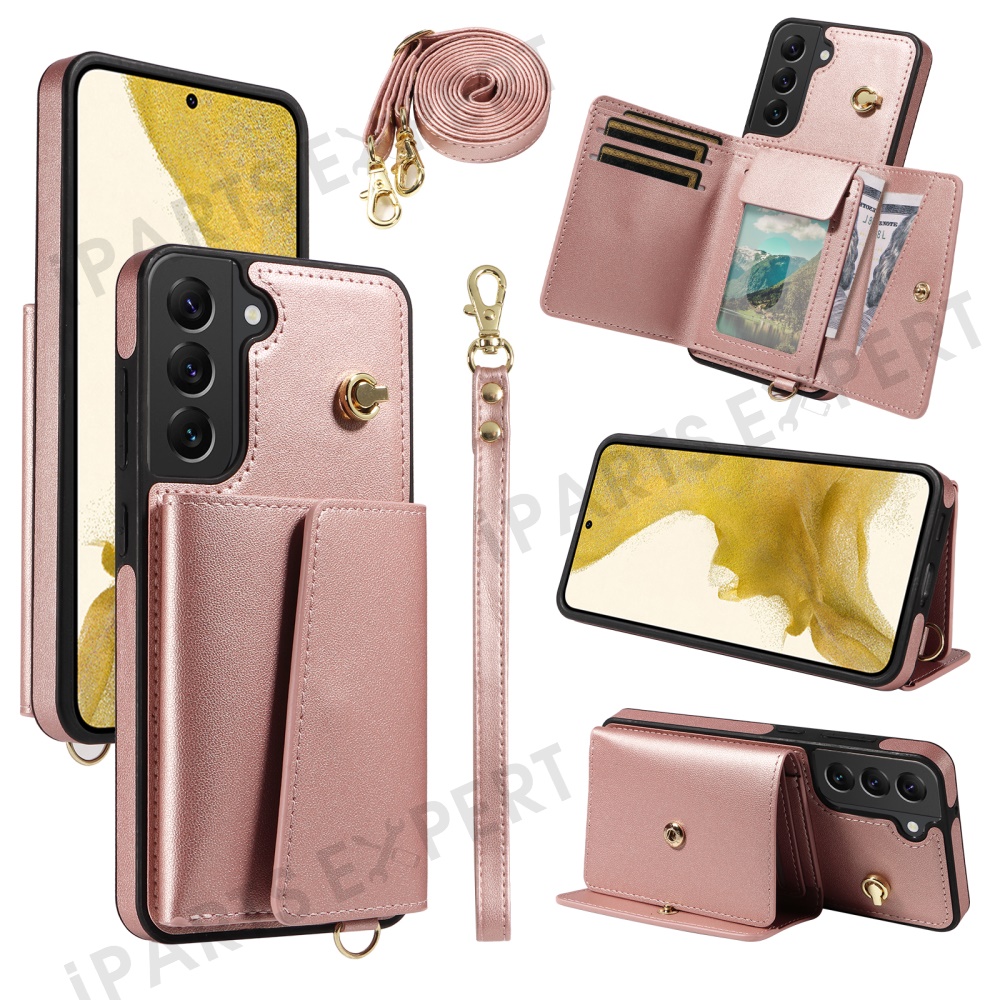 For Samsung Galaxy S22+ 5G Crossbody Phone Case Card Holder Kickstand Leather Coated TPU Mobile Cover - Rose Gold