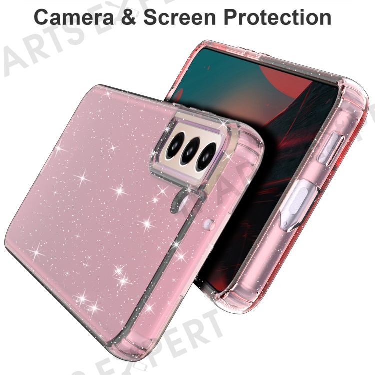 For Samsung Galaxy S22+ 5G GW18 Glittery Sequins Anti-scratch Flexible TPU Phone Case Cover - Tranperent Pink