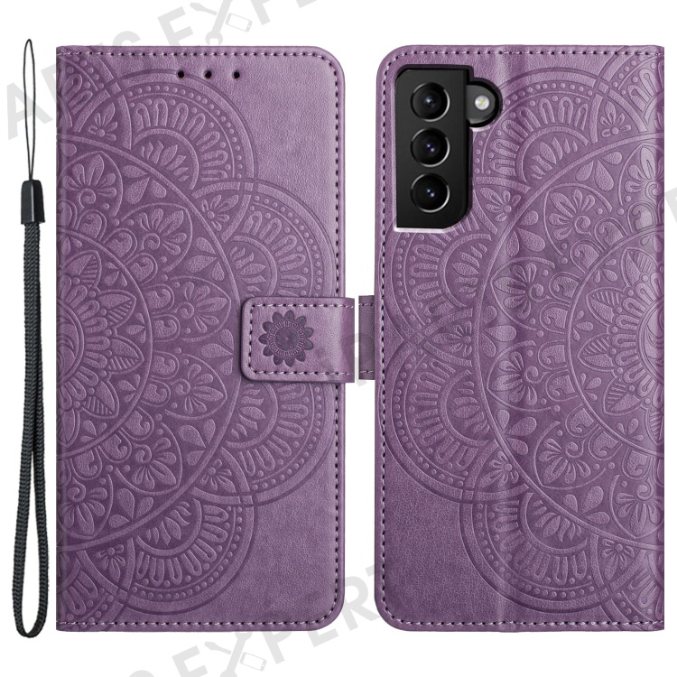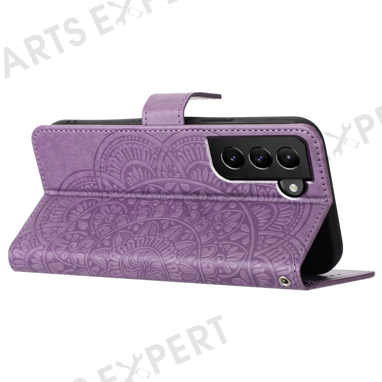 For Samsung Galaxy S22+ 5G Leather Case Mandala Imprinted Flip Phone Cover - Purple