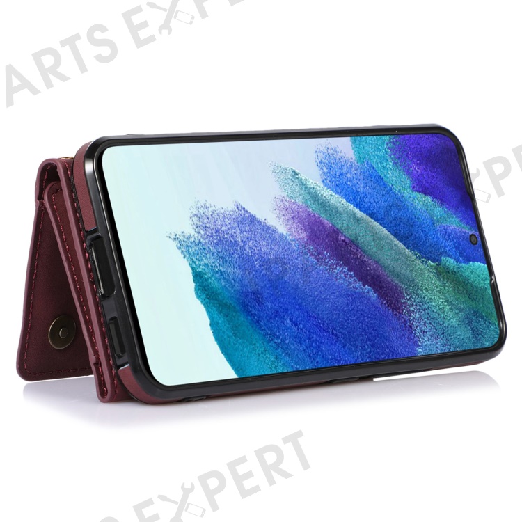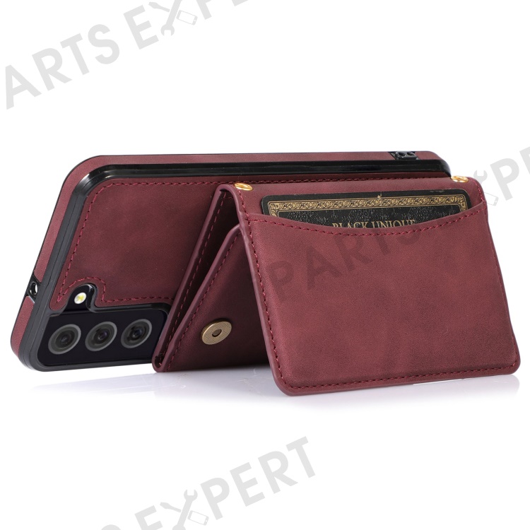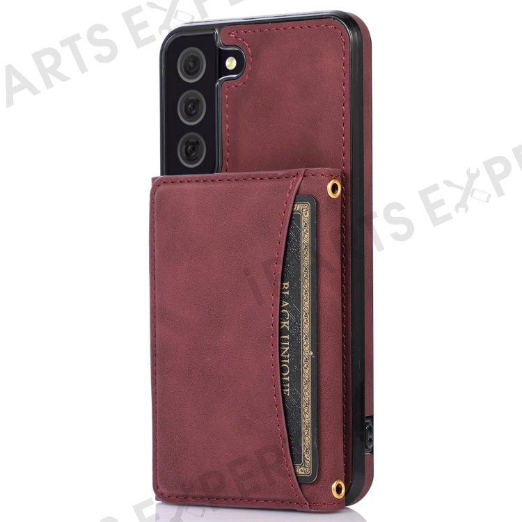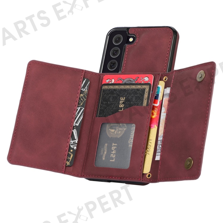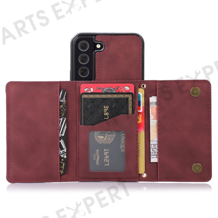 For Samsung Galaxy S22+ 5G Wallet Design Phone Case Wear-resistant Multiple Card Slots Leather Coated TPU Cover - Wine Red