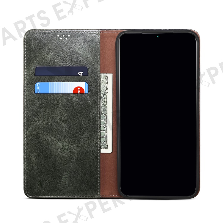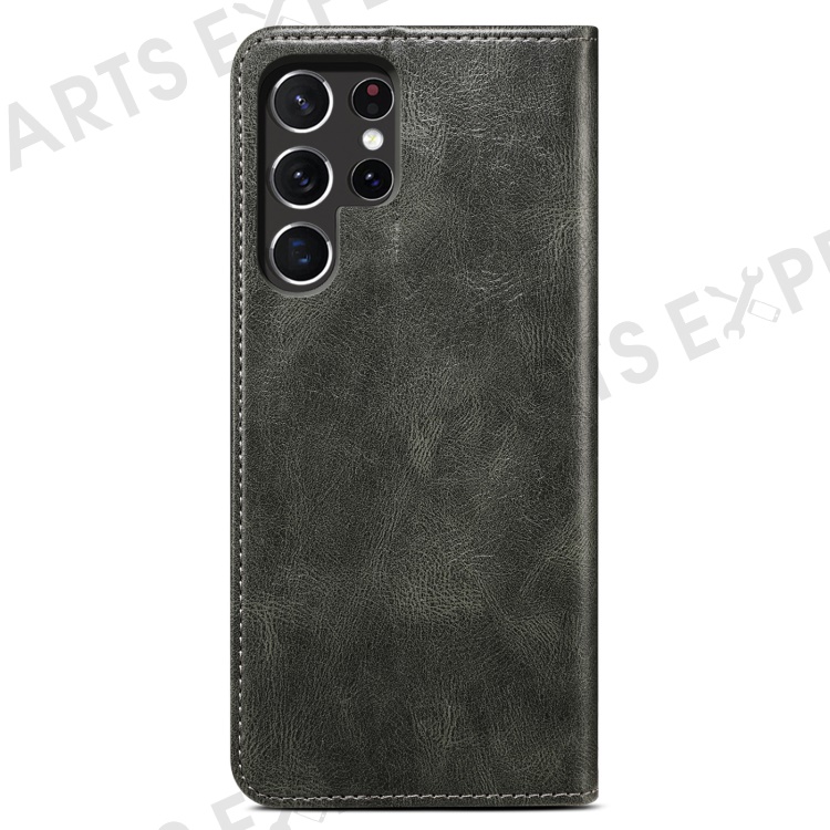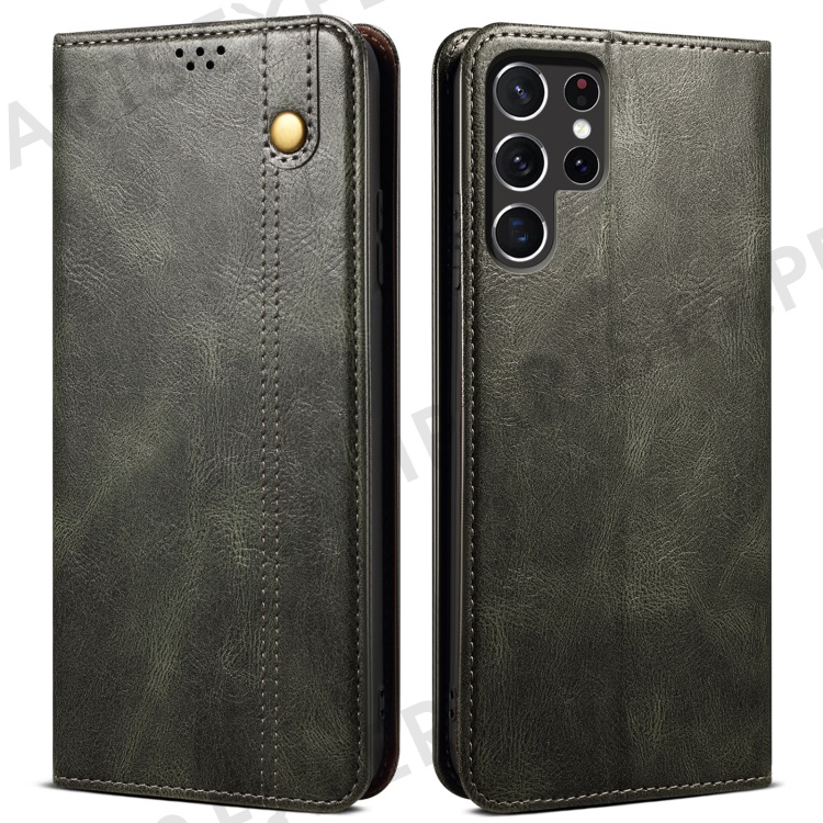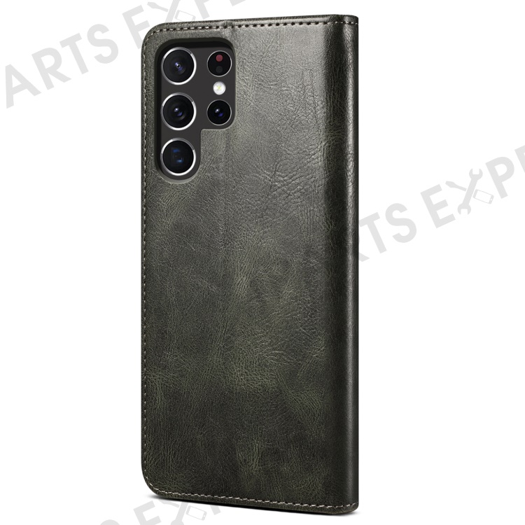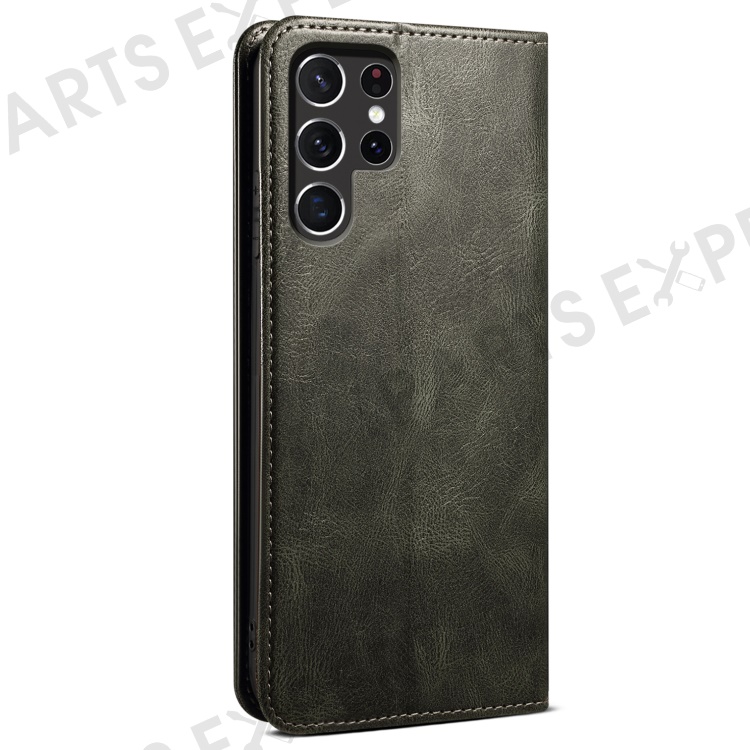 For Samsung Galaxy S22 Ultra 5G Crazy Horse Texture Anti-scratch Waxy PU Leather Magnetic Absorption Wallet Stand Phone Case Cover Shell - Green