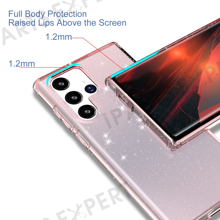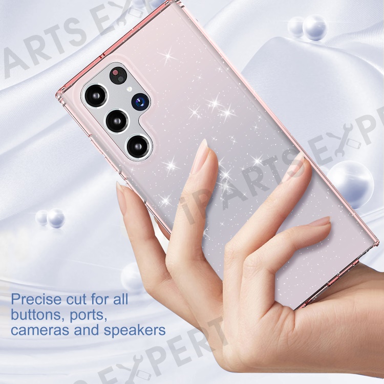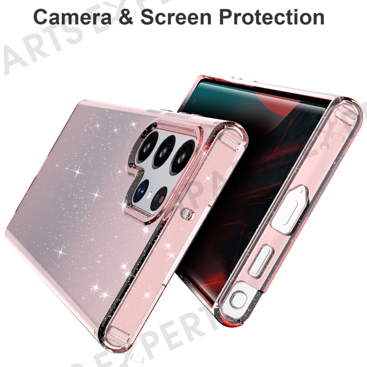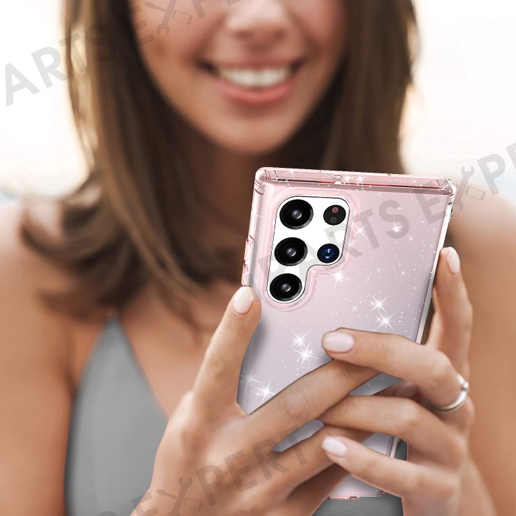 For Samsung Galaxy S22 Ultra 5G GW18 Stylish Shockproof Glittery Sequins TPU Phone Case Shell - Transparent Pink