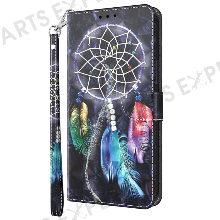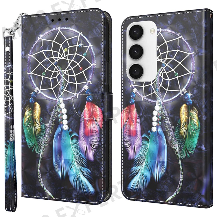 For Samsung Galaxy S23 3D Pattern Printing Anti-scratch Stand Case PU Leather Drop-proof Phone Wallet Cover with Strap - Dream Catcher