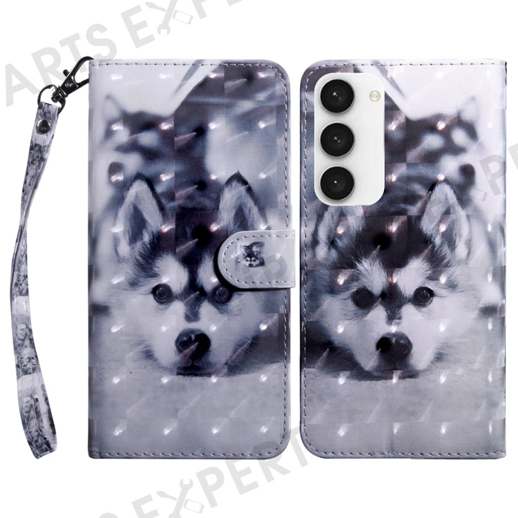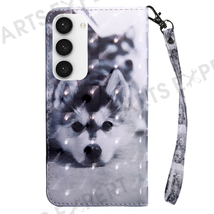 For Samsung Galaxy S23 3D Pattern Printing Anti-scratch Stand Case PU Leather Drop-proof Phone Wallet Cover with Strap - Husky