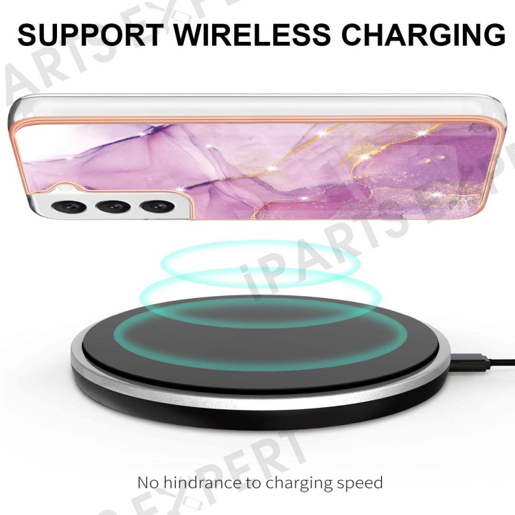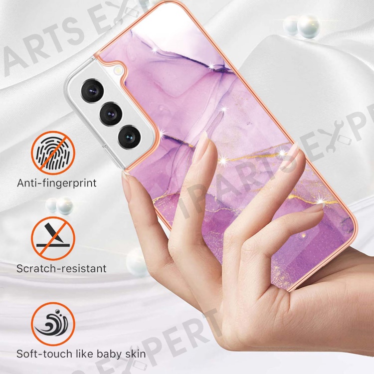 For Samsung Galaxy S23 TPU Case with IMD Marble Pattern Electroplated Back Cover - Purple 001