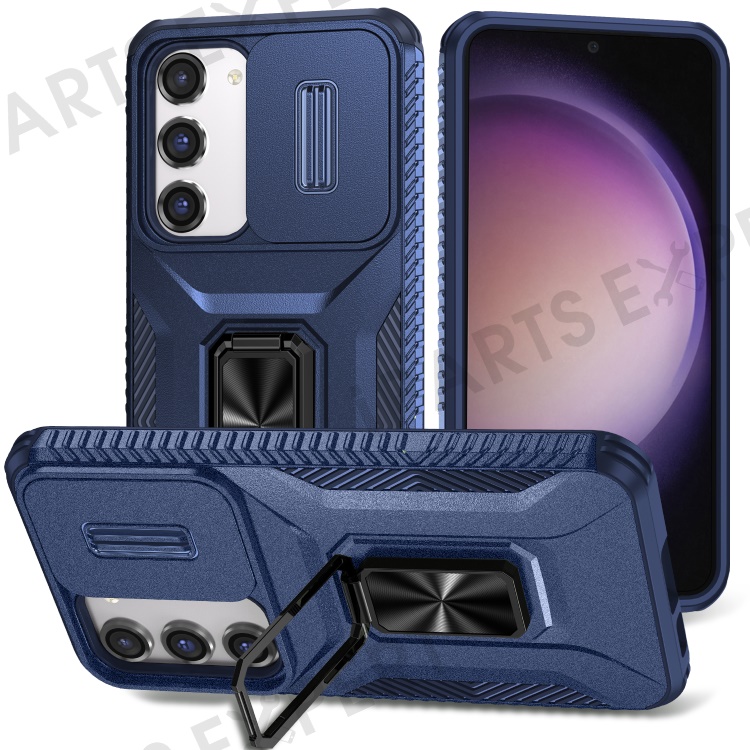 For Samsung Galaxy S23 Case Camshield Kickstand TPU+PC Anti-Slip Phone Cover - Blue