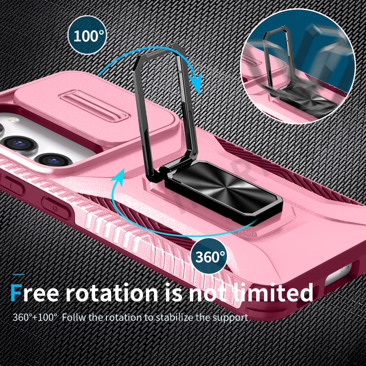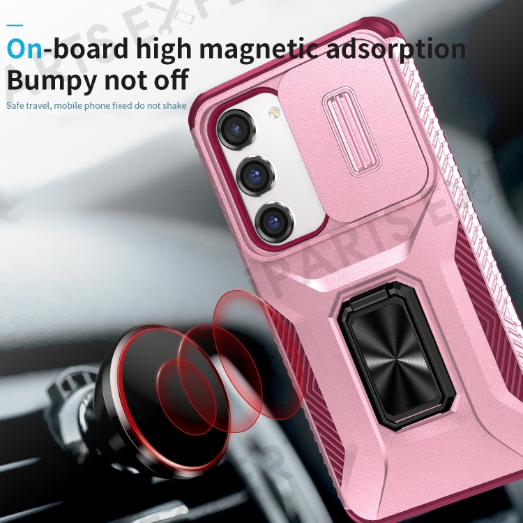 For Samsung Galaxy S23 Case Camshield Kickstand TPU+PC Anti-Slip Phone Cover - Pink+Wine Red