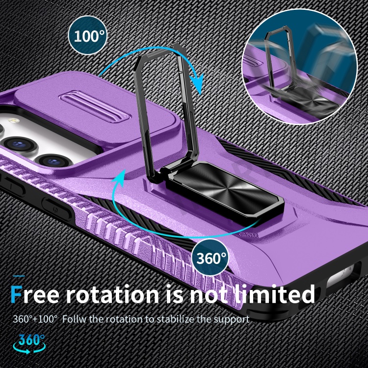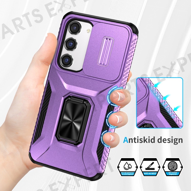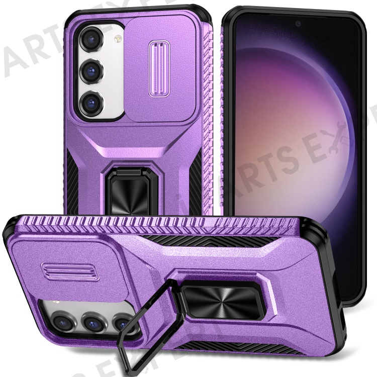For Samsung Galaxy S23 Case Camshield Kickstand TPU+PC Anti-Slip Phone Cover - Purple
