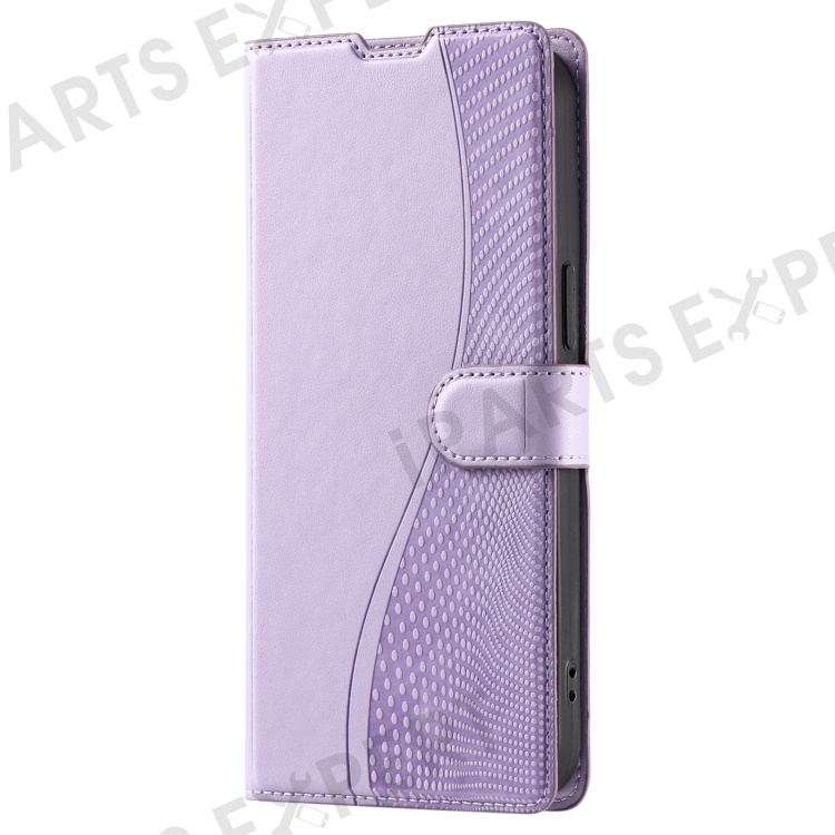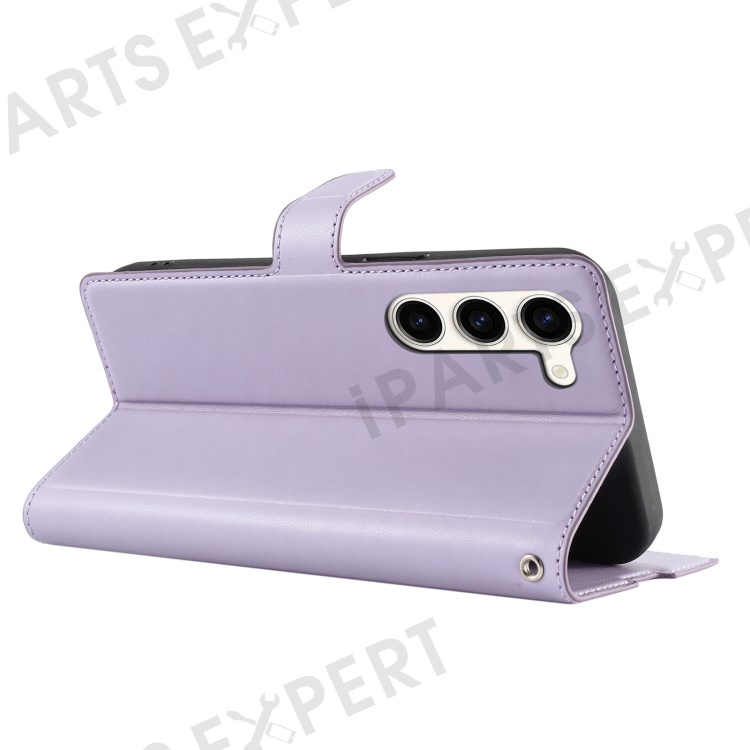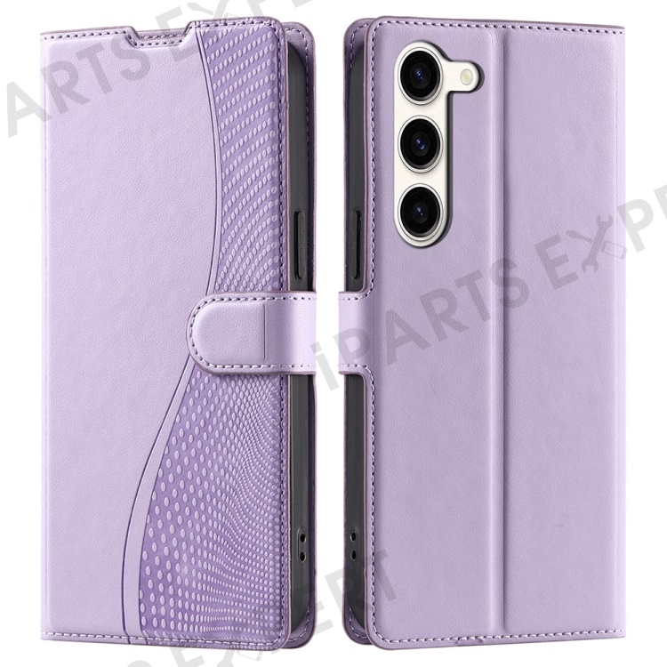 For Samsung Galaxy S23 Case Dots Imprinted PU Leather Flip Phone Cover with Card Slot, Strap - Purple