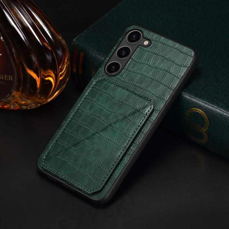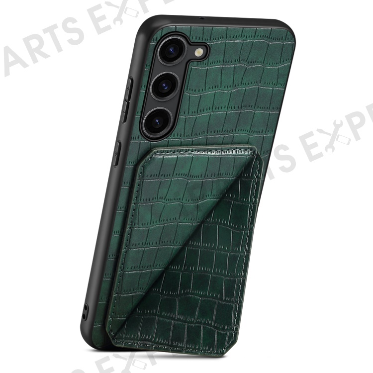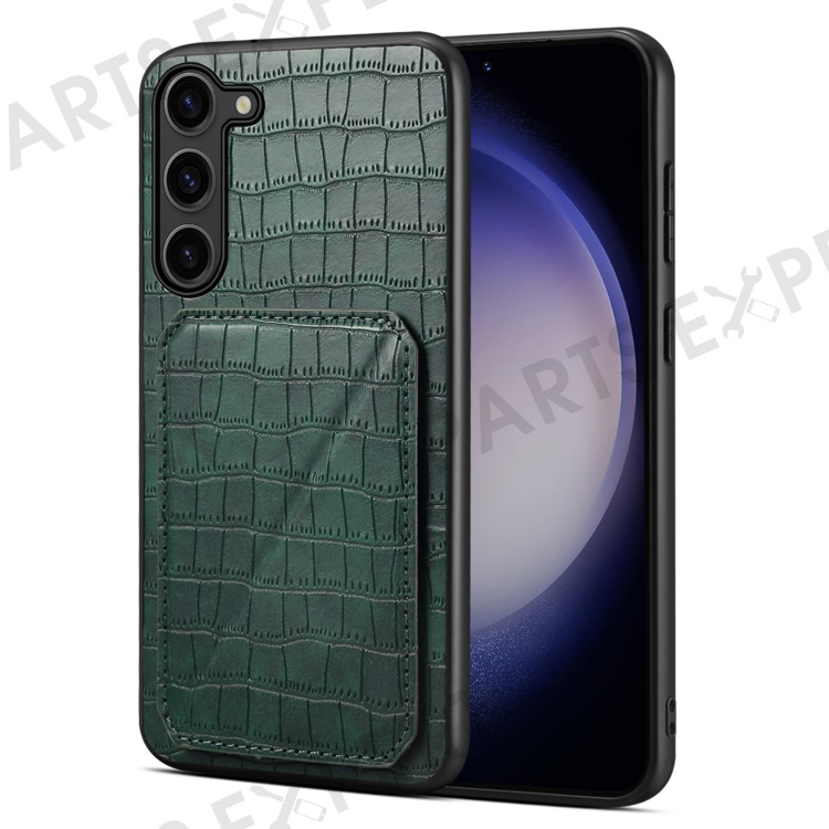 For Samsung Galaxy S23 Case Hidden Card Holder Kickstand Leather+PC+TPU Cellphone Cover - Green