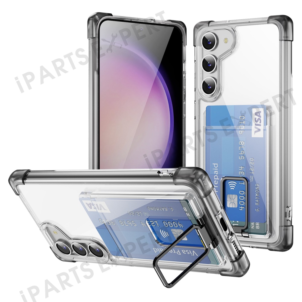For Samsung Galaxy S23 Case Reinforced Corners TPU + Acrylic Phone Cover with Kickstand Card Holder - Transparent Black