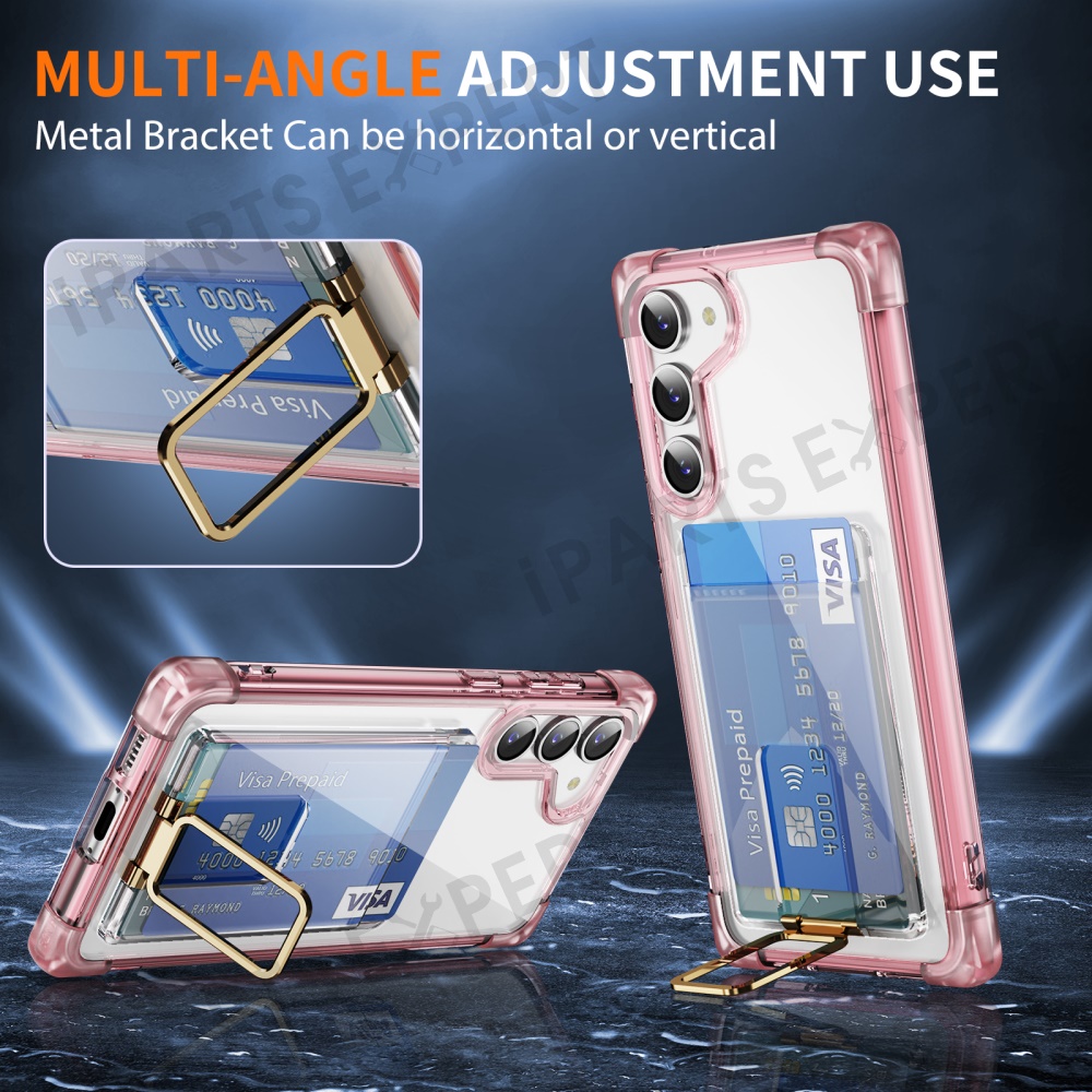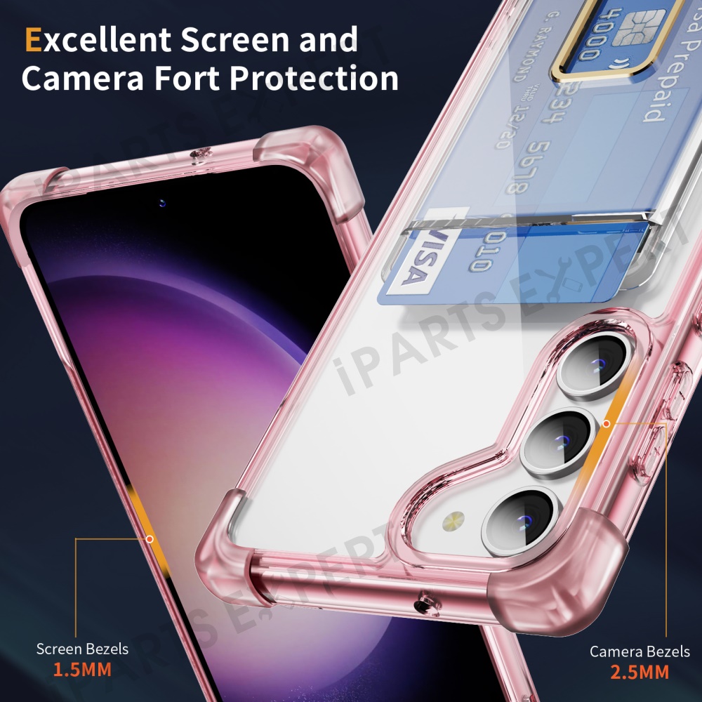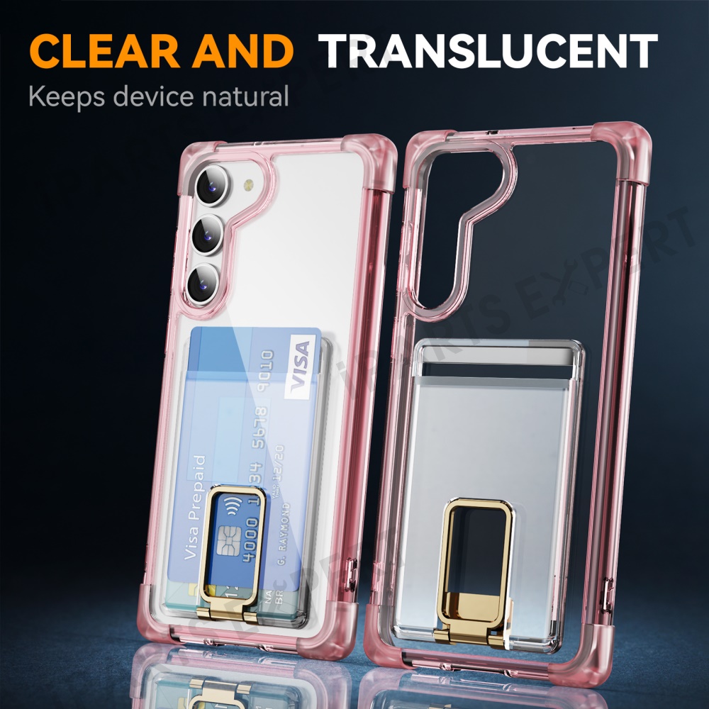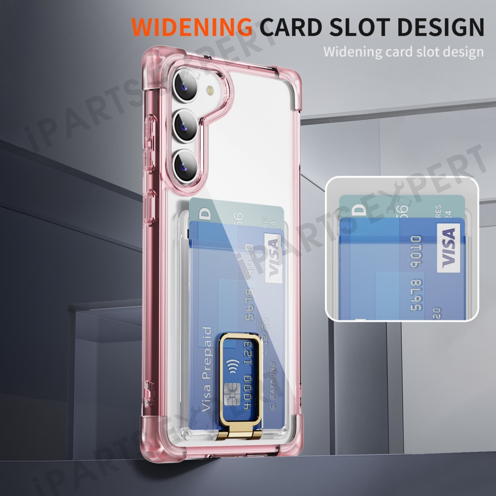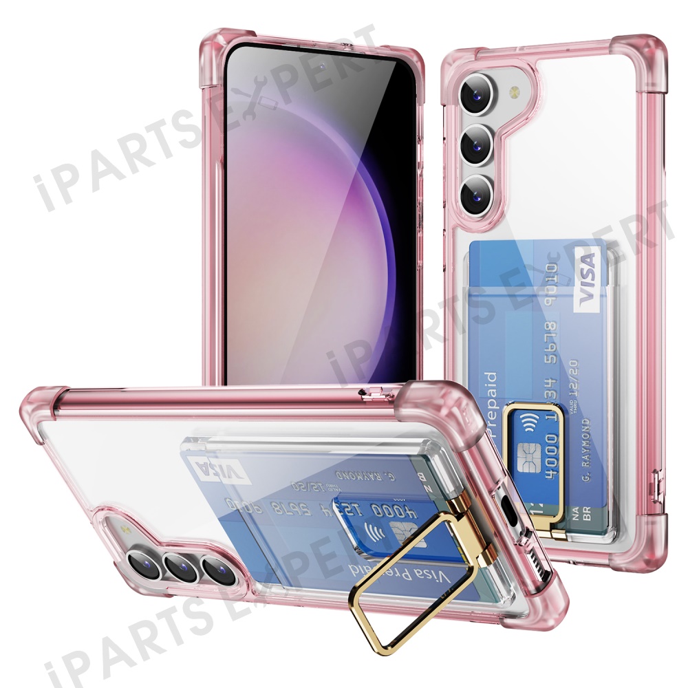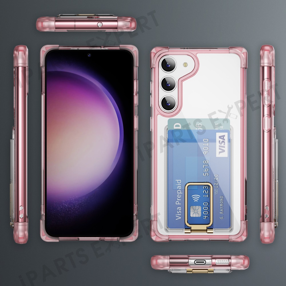 For Samsung Galaxy S23+ Case Reinforced Corners TPU + Acrylic Phone Cover with Kickstand Card Holder - Transparent Pink