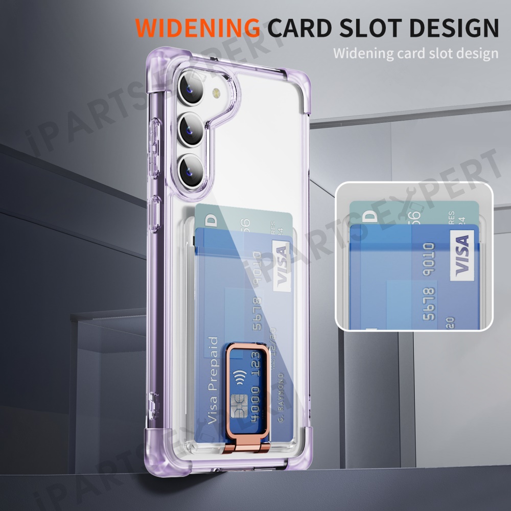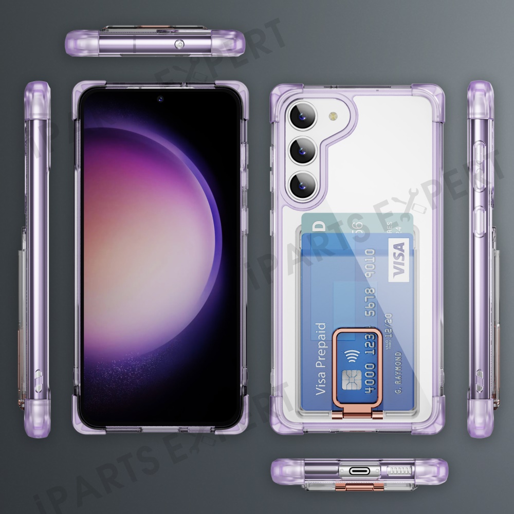 For Samsung Galaxy S23 Case Reinforced Corners TPU + Acrylic Phone Cover with Kickstand Card Holder - Transparent Purple