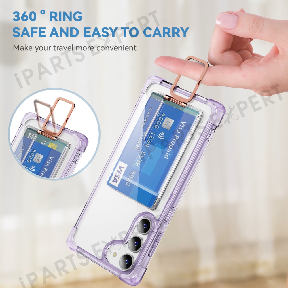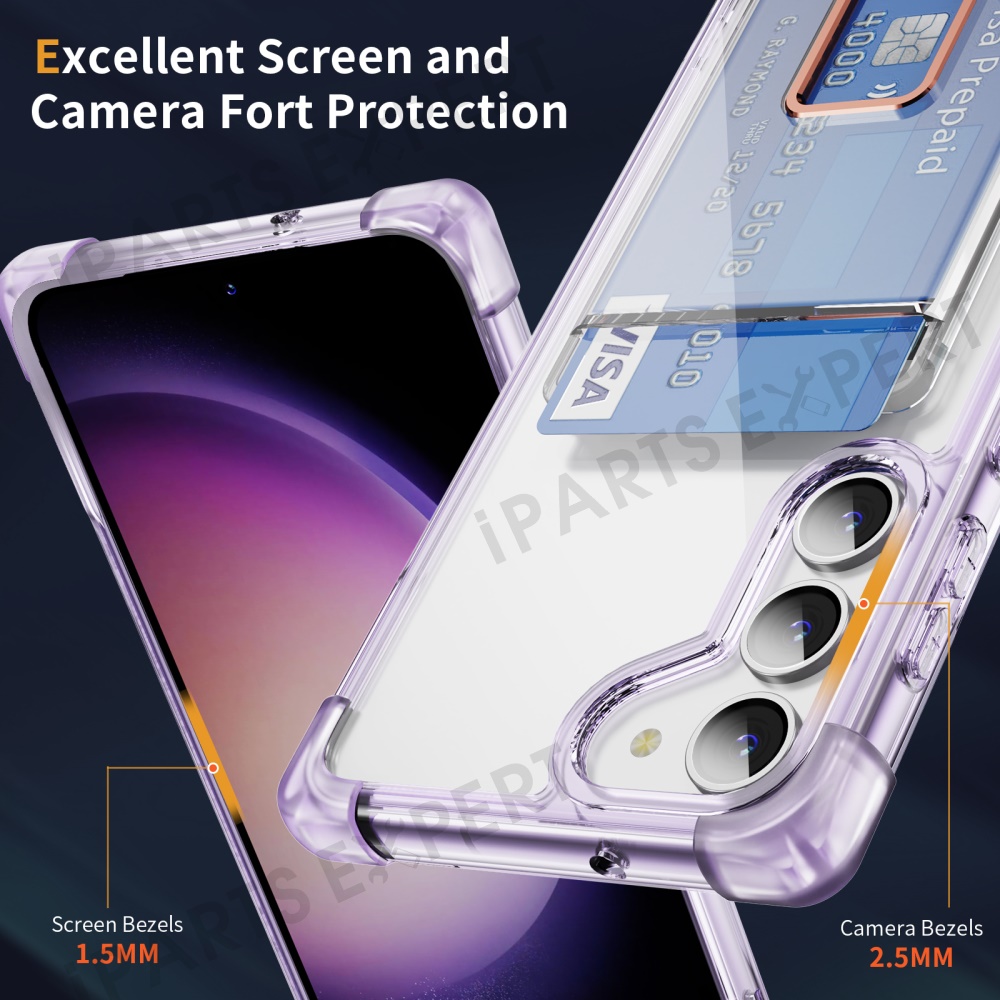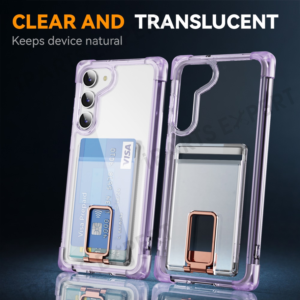 For Samsung Galaxy S23+ Case Reinforced Corners TPU + Acrylic Phone Cover with Kickstand Card Holder - Transparent Purple