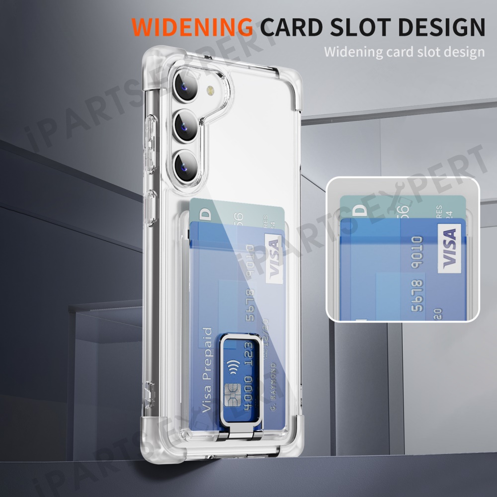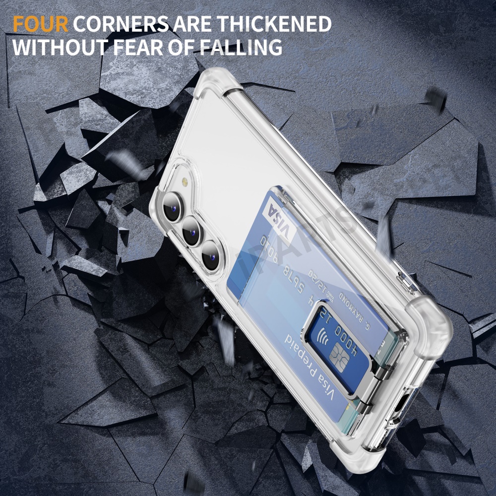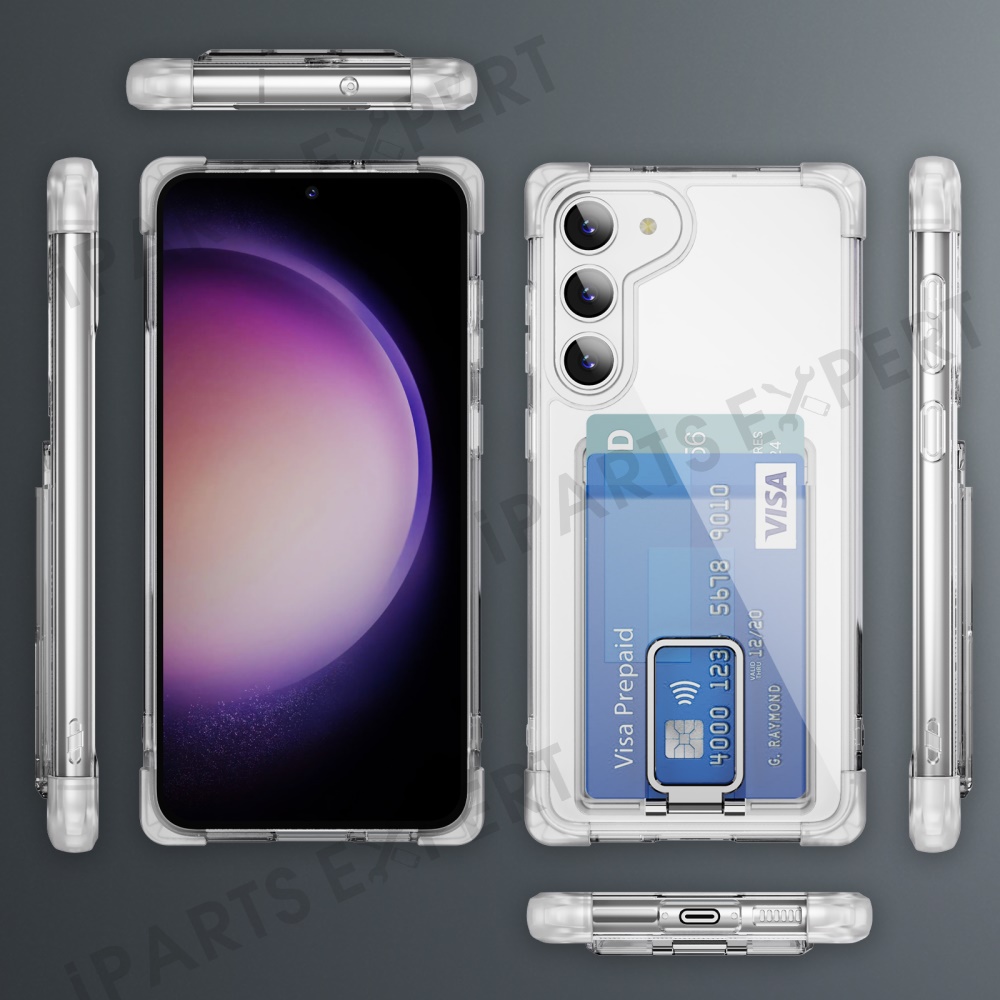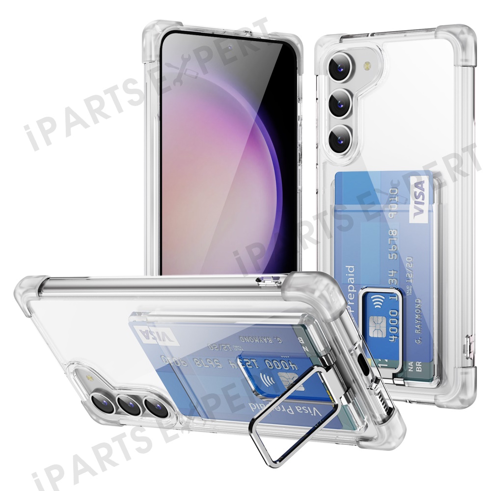 For Samsung Galaxy S23 Case Reinforced Corners TPU + Acrylic Phone Cover with Kickstand Card Holder - Transparent