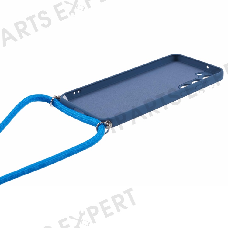 For Samsung Galaxy S23+ Case TPU Rubberized Phone Cover with Long Lanyard - Sapphire