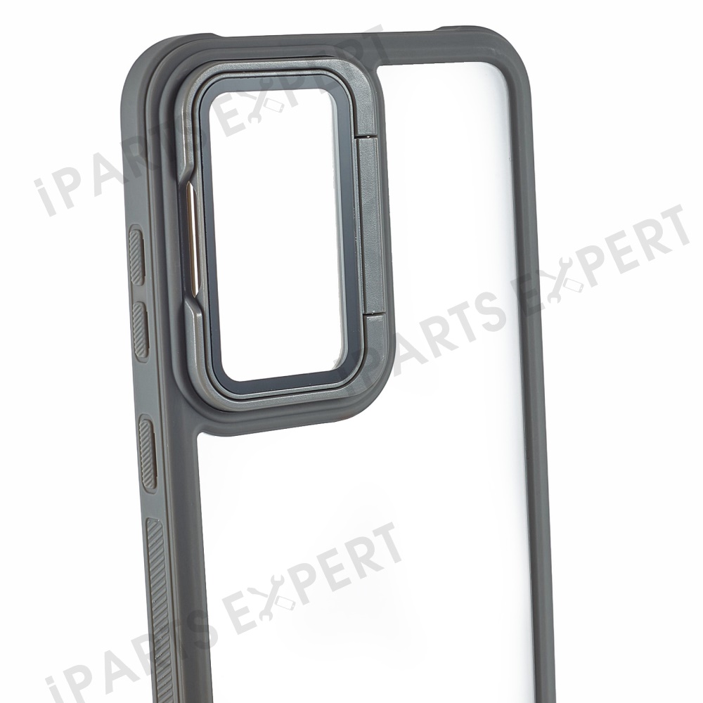 For Samsung Galaxy S23+ Case with Lens Cover Kickstand PC + TPU Clear Back Phone Cover - Grey
