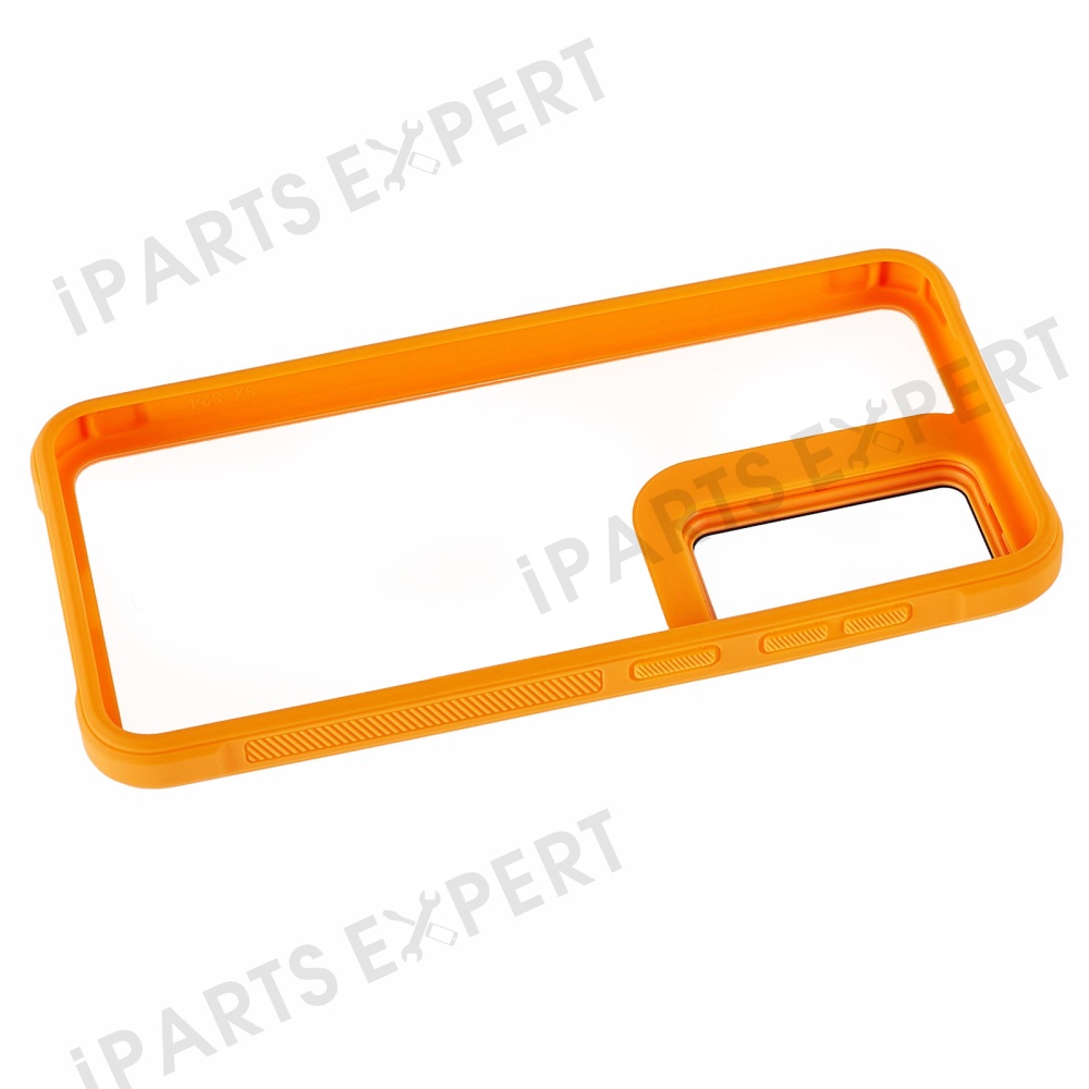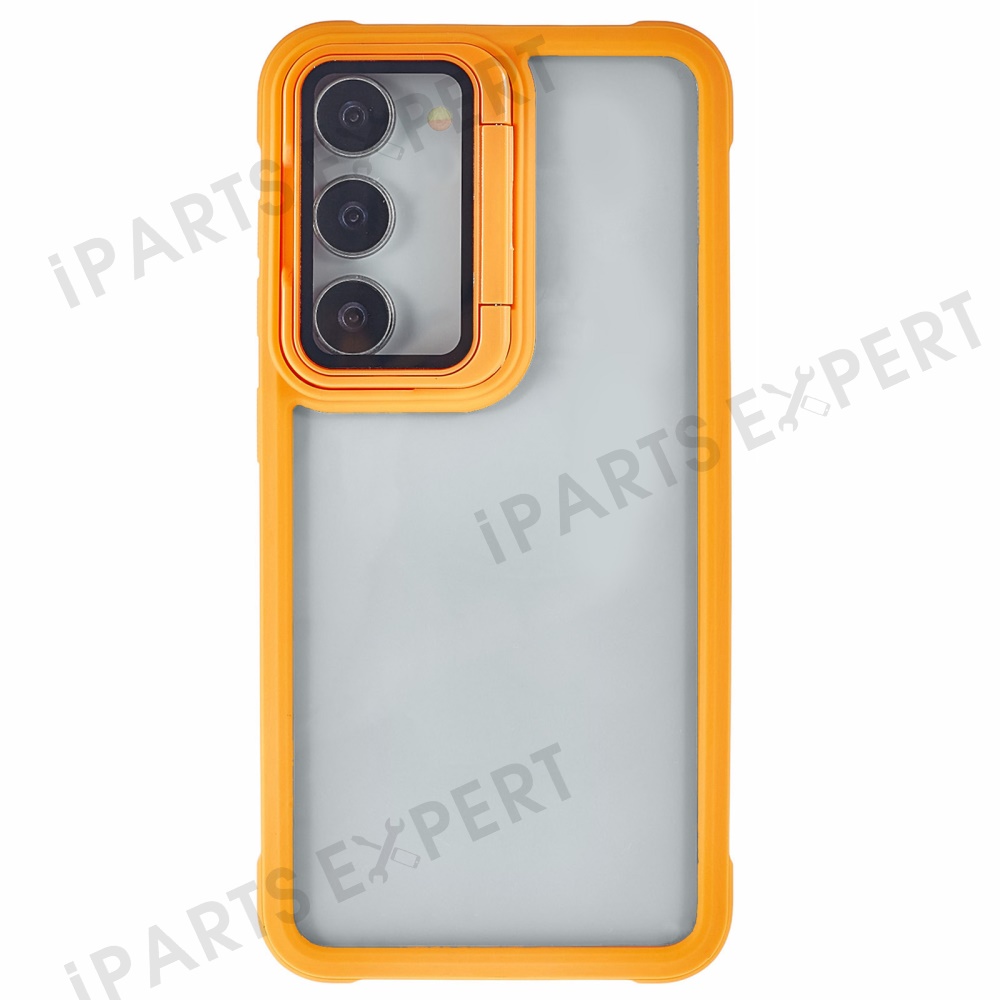 For Samsung Galaxy S23+ Case with Lens Cover Kickstand PC + TPU Clear Back Phone Cover - Orange