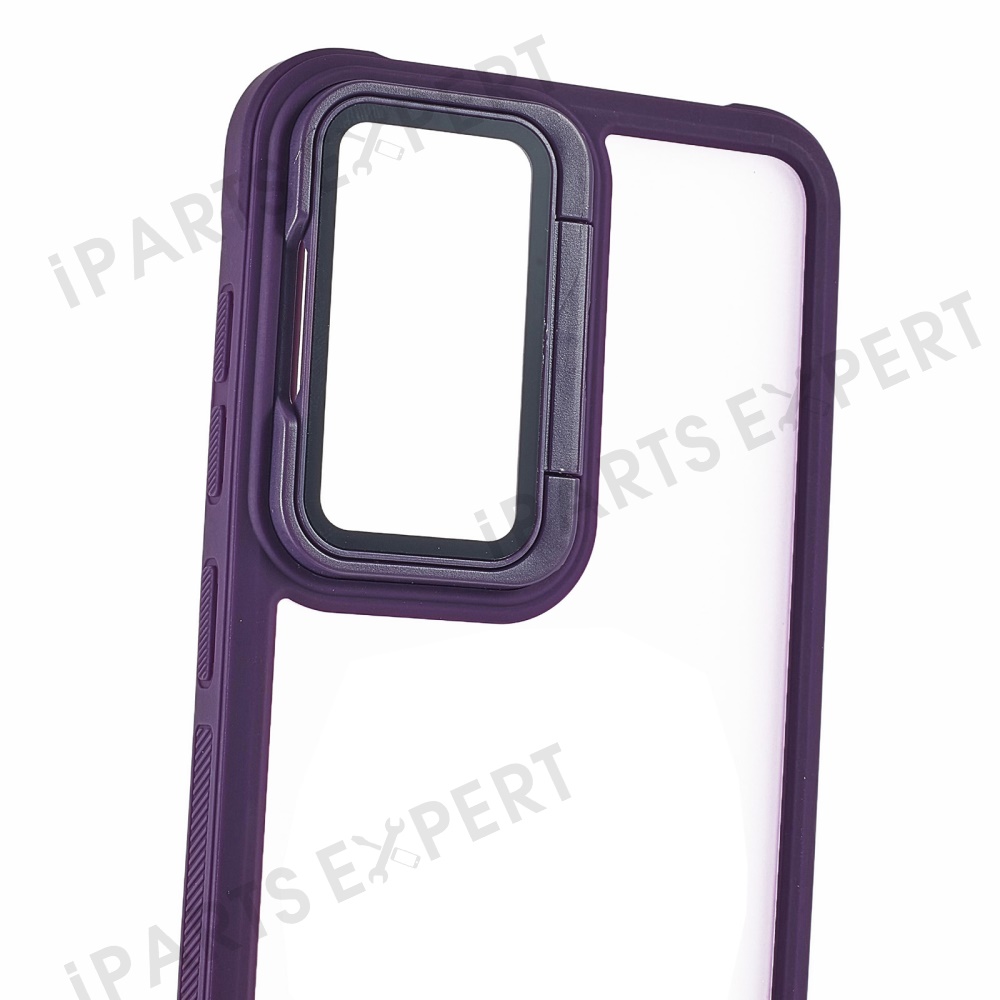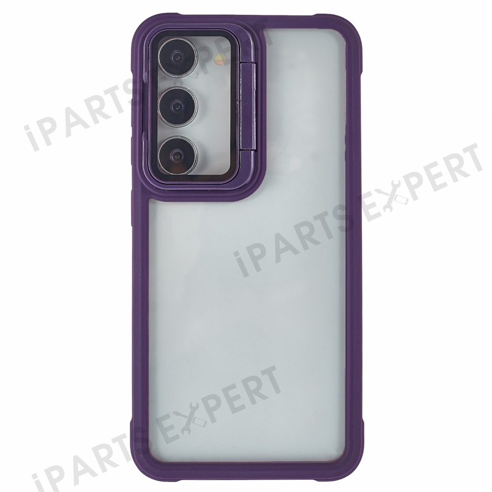 For Samsung Galaxy S23+ Case with Lens Cover Kickstand PC + TPU Clear Back Phone Cover - Purple