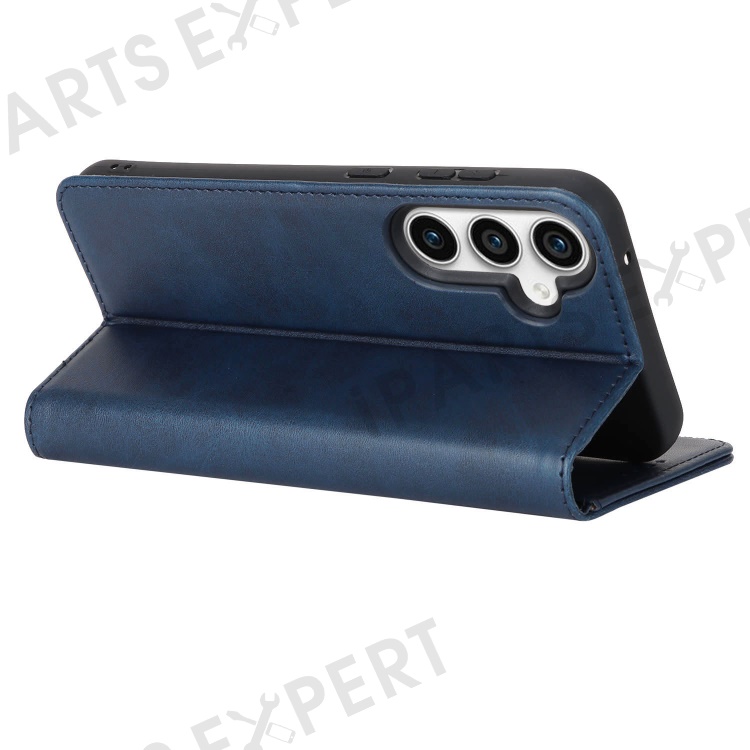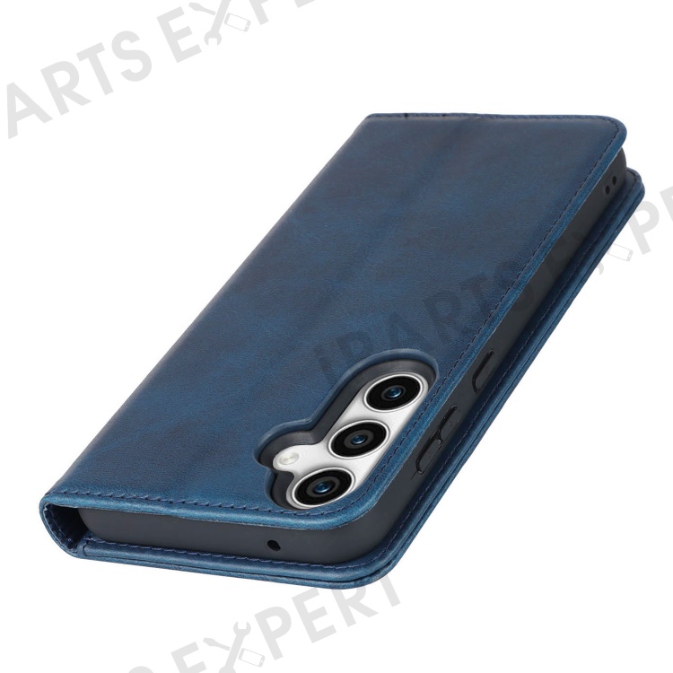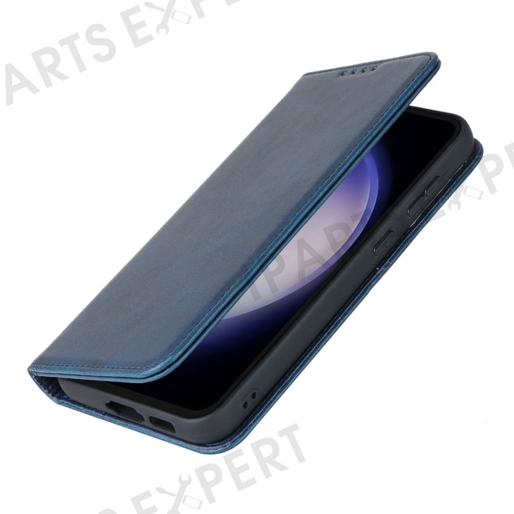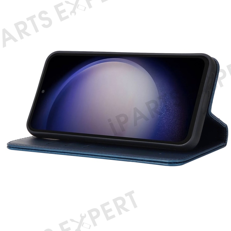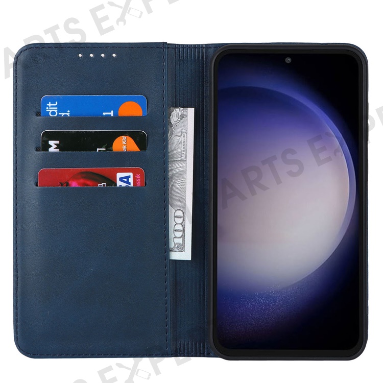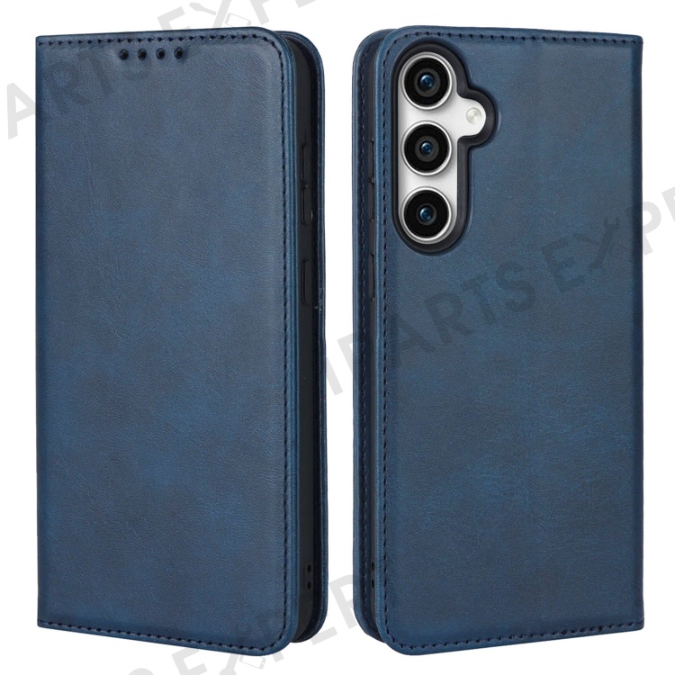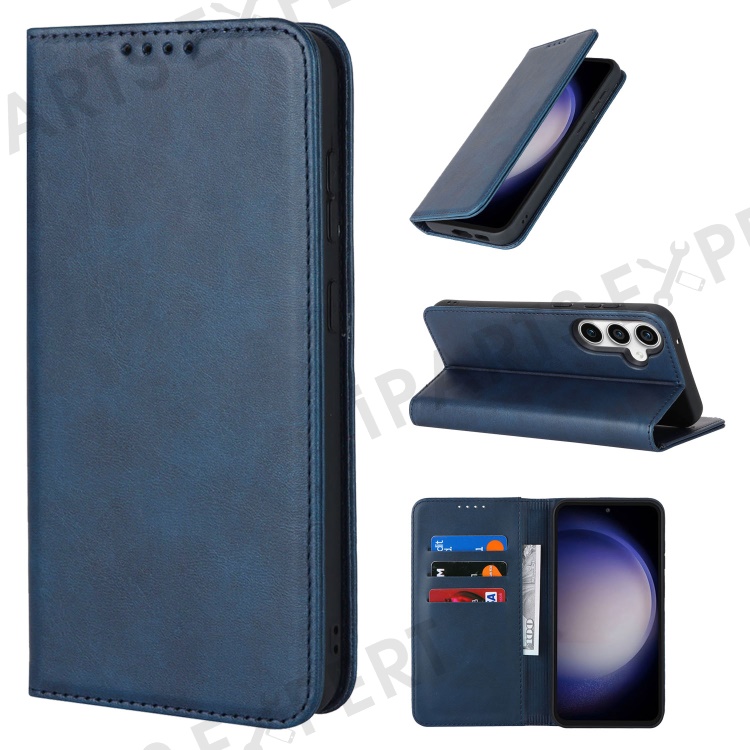 For Samsung Galaxy S23 FE Calf Texture Anti-fall Case Leather Wallet Stand Phone Cover - Blue
