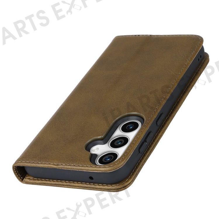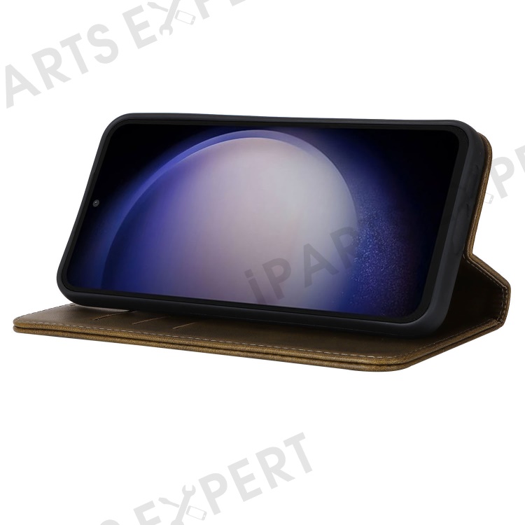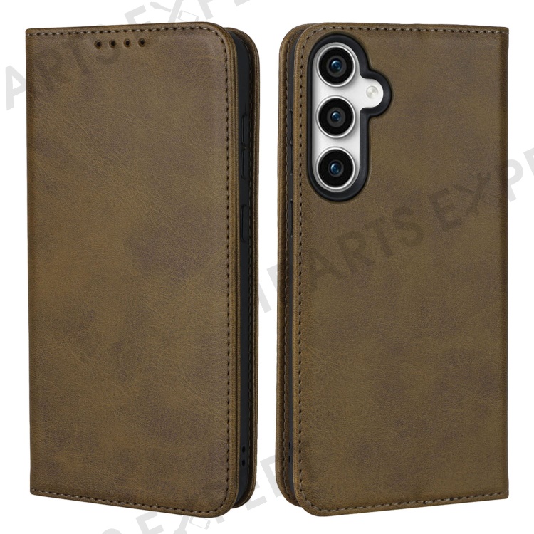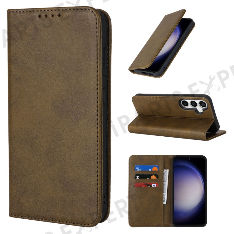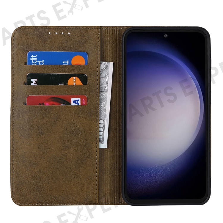 For Samsung Galaxy S23 FE Calf Texture Anti-fall Case Leather Wallet Stand Phone Cover - Dark Green