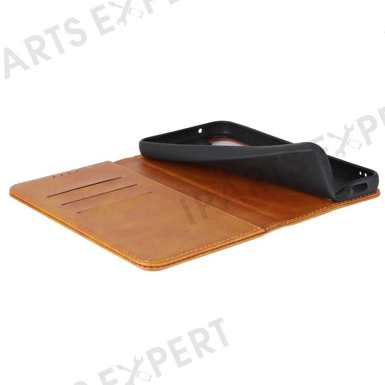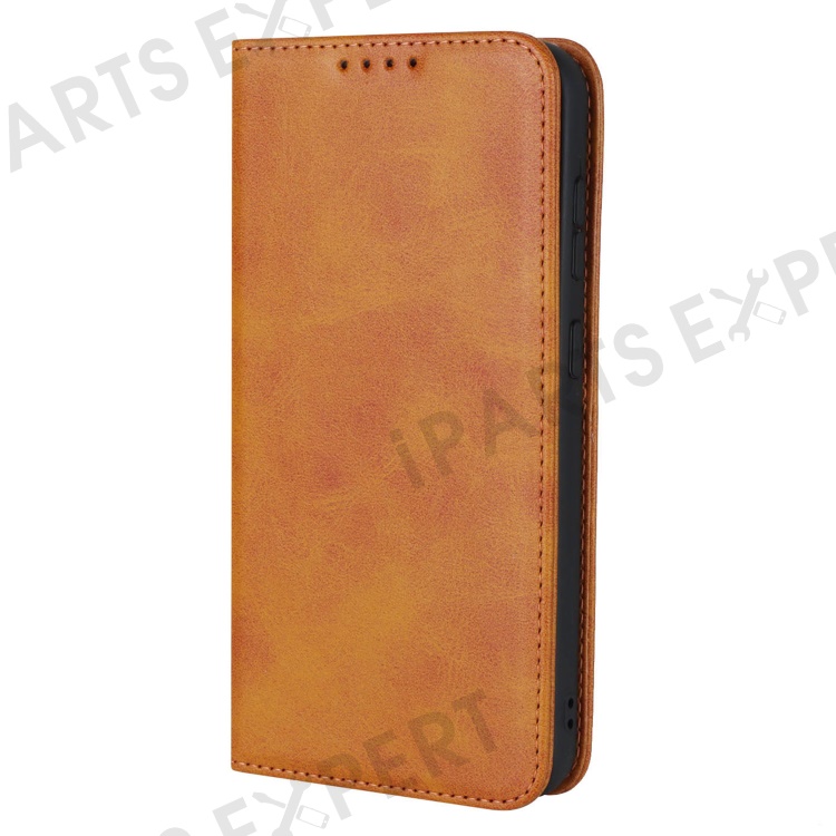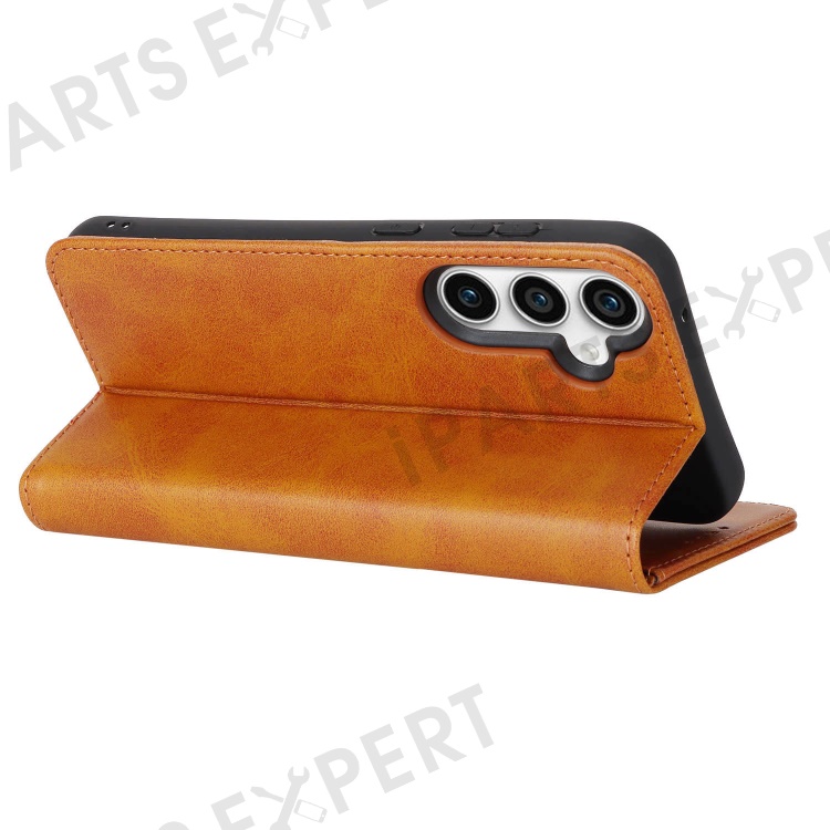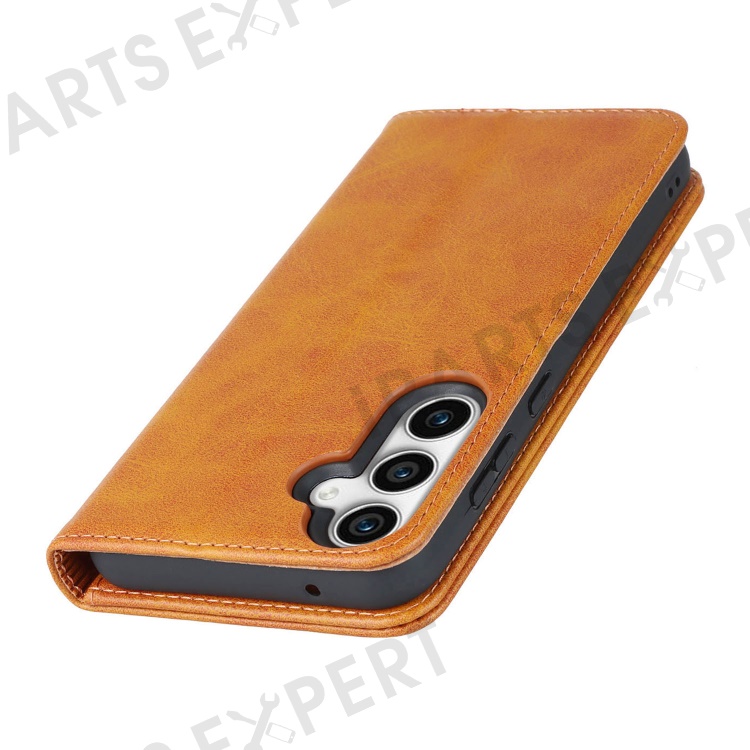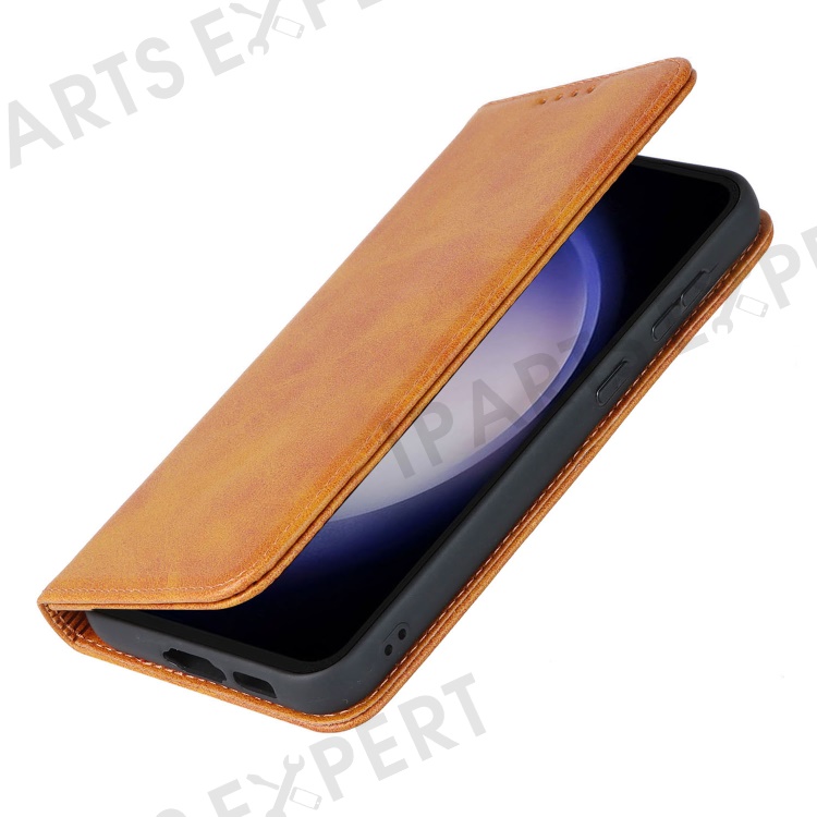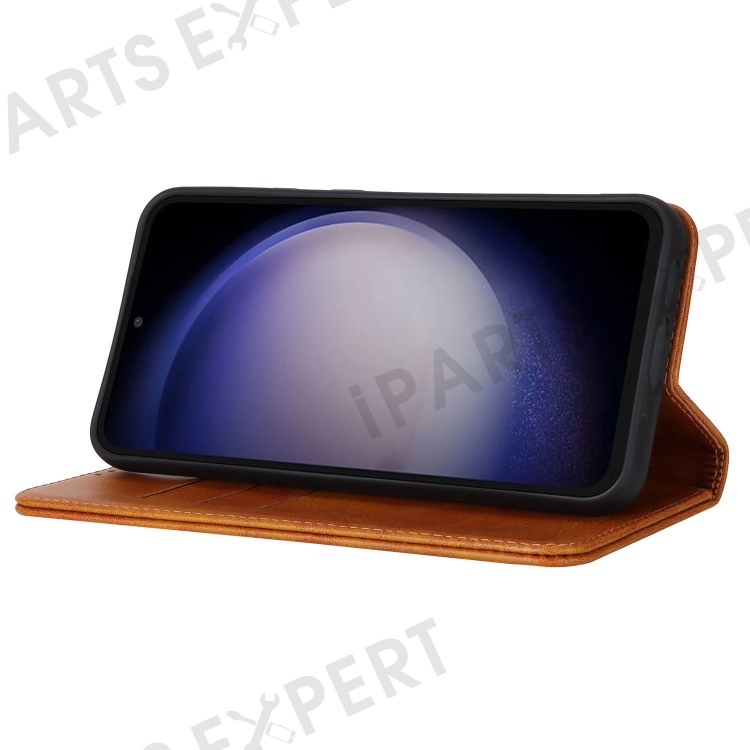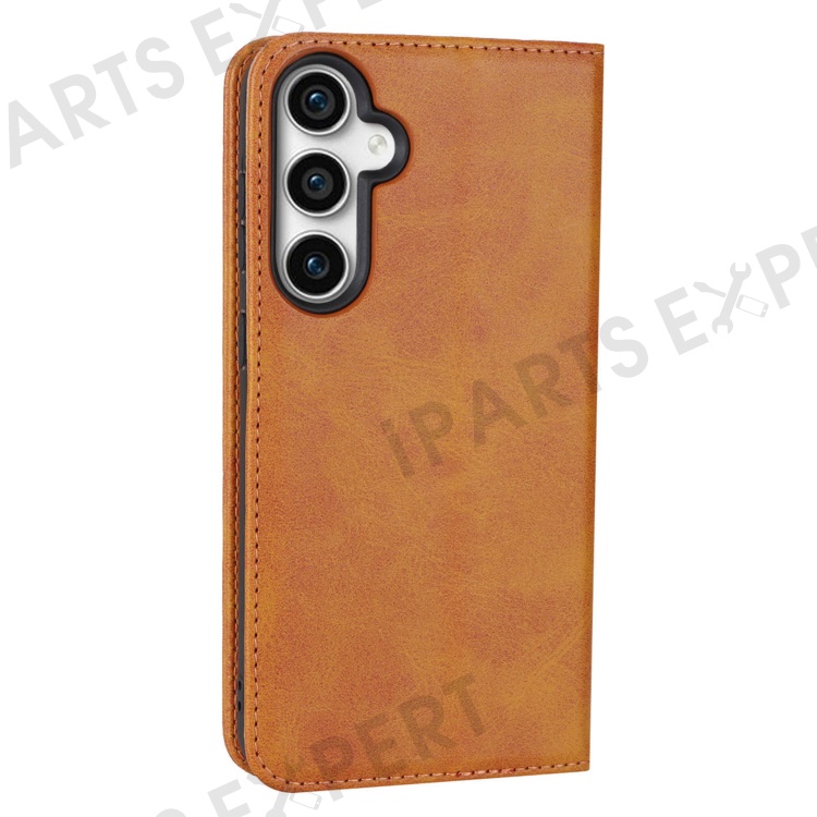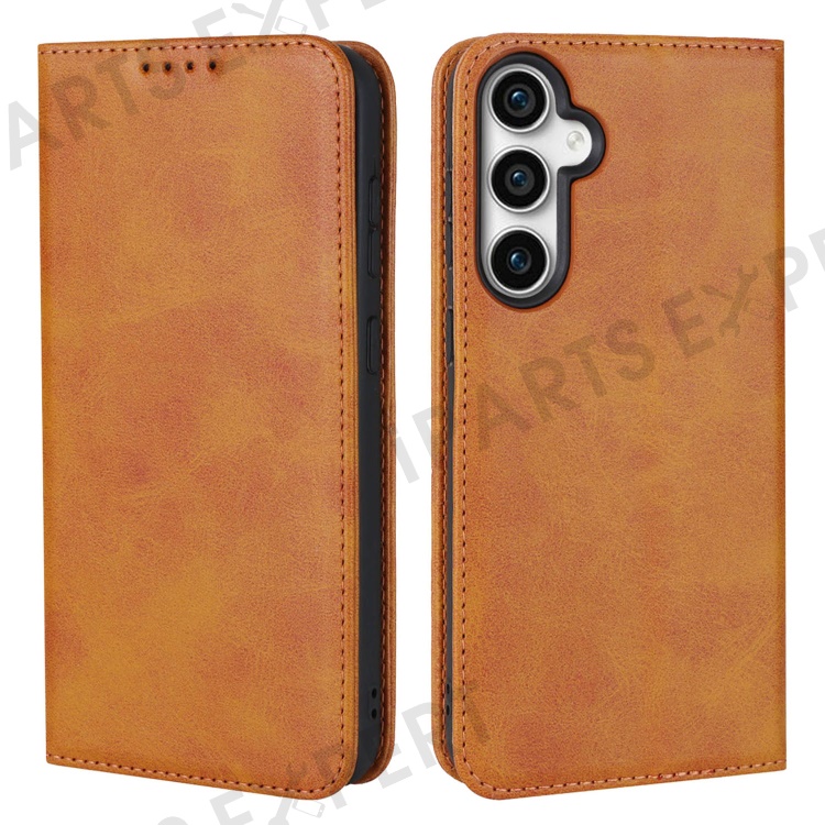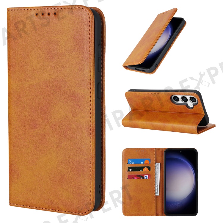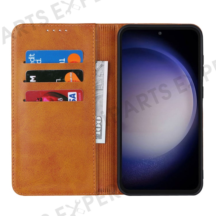 For Samsung Galaxy S23 FE Calf Texture Anti-fall Case Leather Wallet Stand Phone Cover - Light Brown