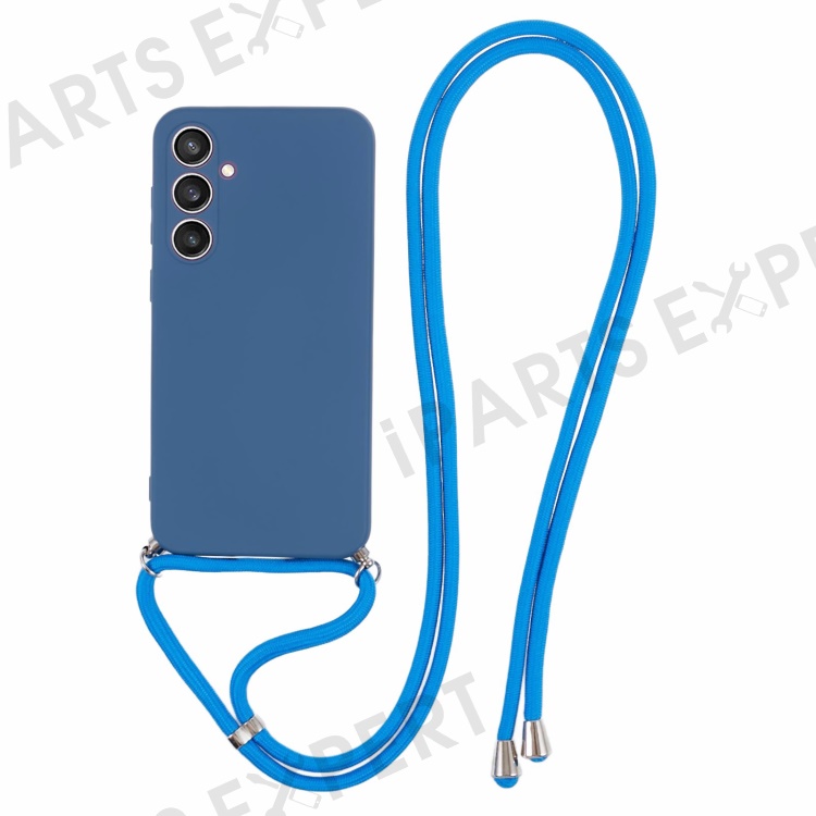 For Samsung Galaxy S23 FE Case Fiber Lining TPU Back Cover with Long Lanyard - Sapphire