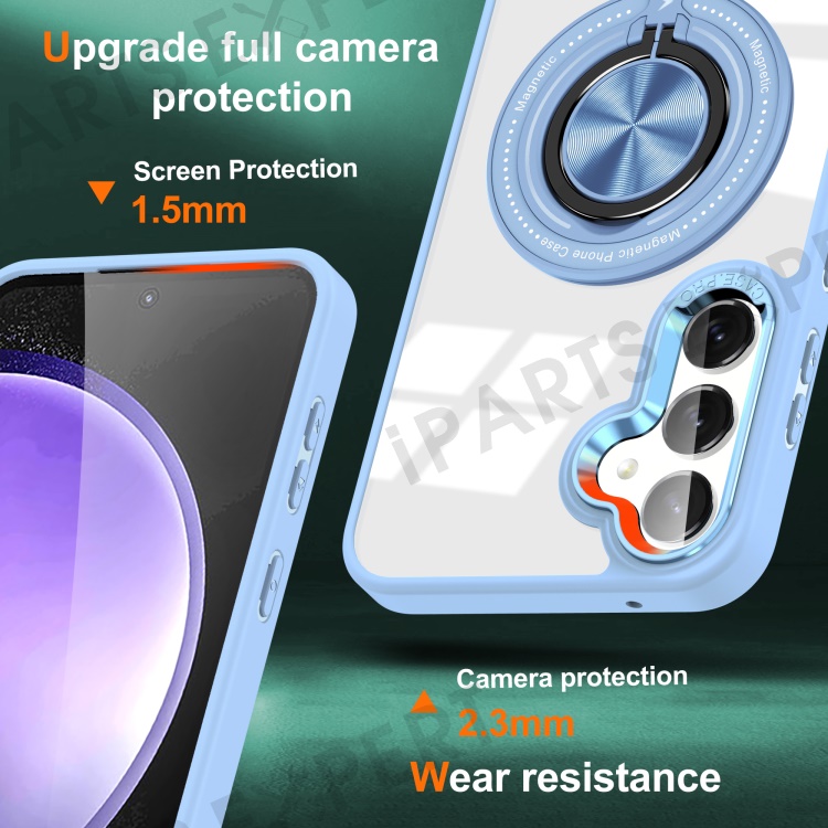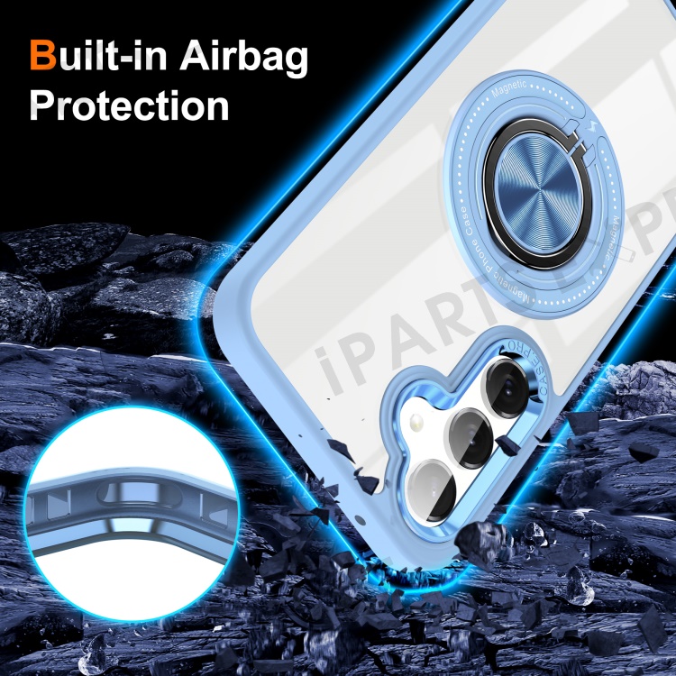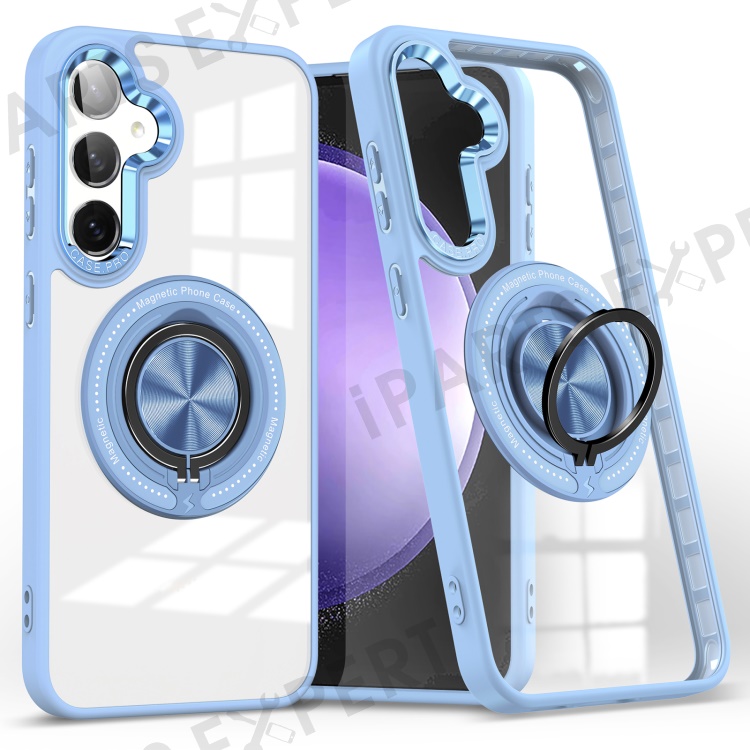 For Samsung Galaxy S23 FE Case Magnetic Ring Holder Kickstand PC+TPU Phone Cover - Baby Blue