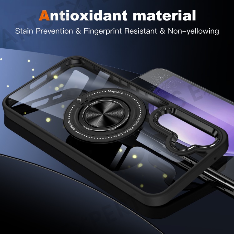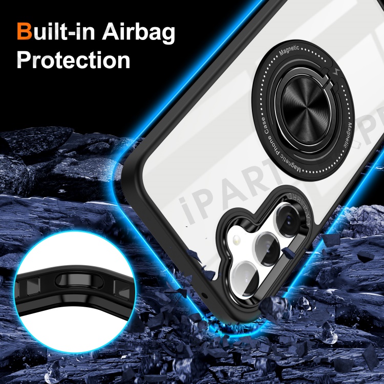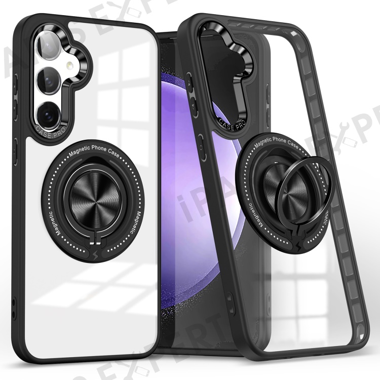 For Samsung Galaxy S23 FE Case Magnetic Ring Holder Kickstand PC+TPU Phone Cover - Black