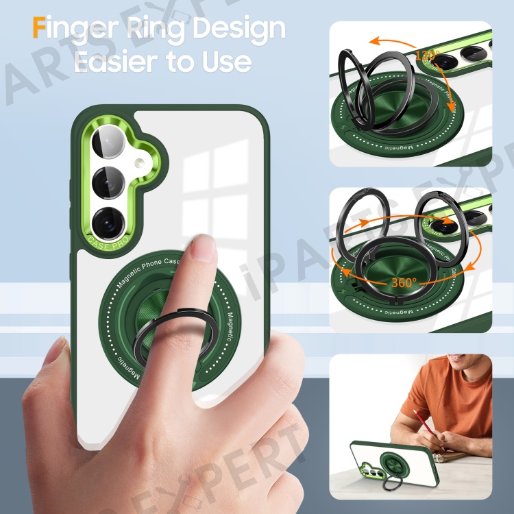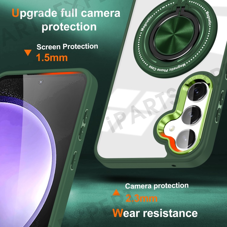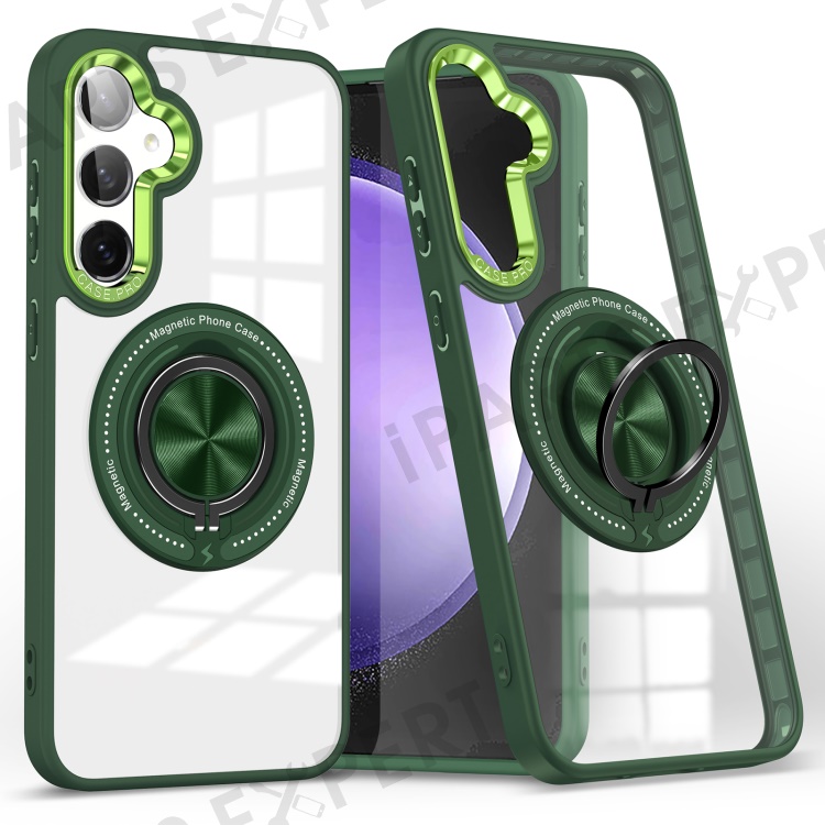 For Samsung Galaxy S23 FE Case Magnetic Ring Holder Kickstand PC+TPU Phone Cover - Blackish Green