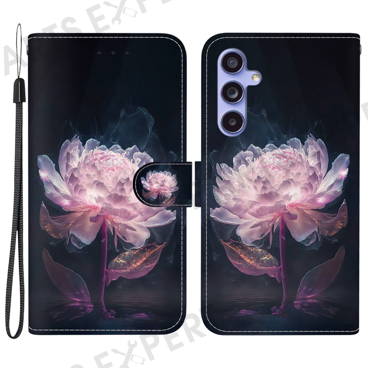 For Samsung Galaxy S23 FE Case PU Leather Pattern Printing Folio Phone Cover - Purple Peony