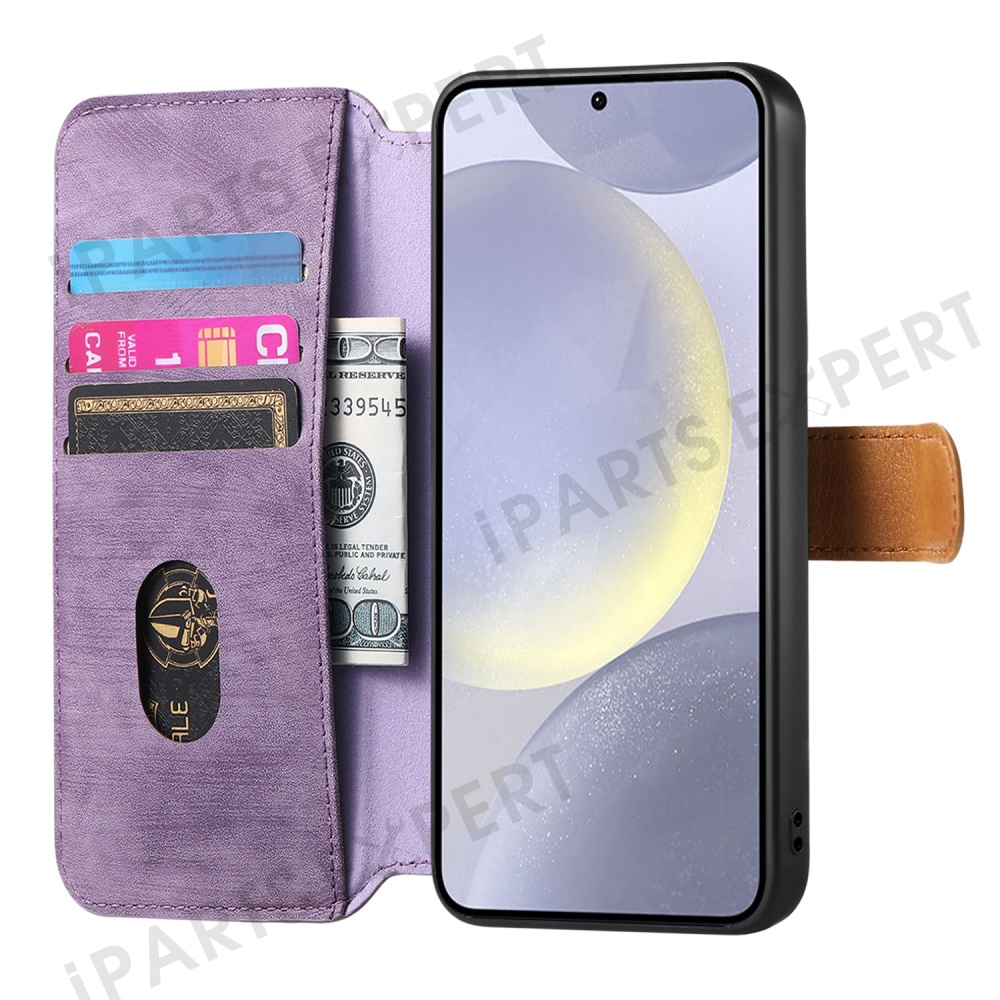 For Samsung Galaxy S23 FE Case Wallet Retro Leather Phone Cover with Wristband Kickstand - Purple