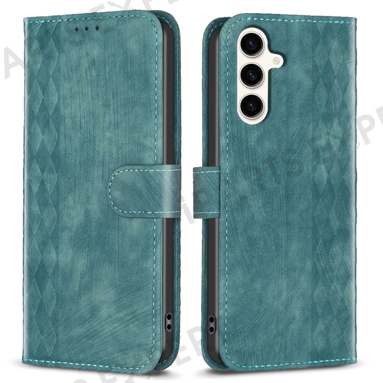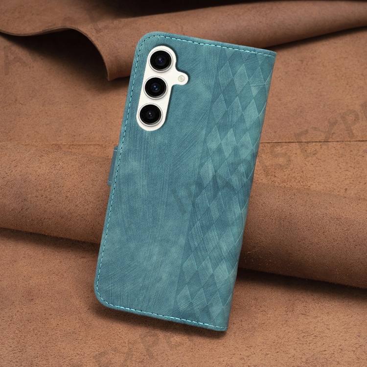 For Samsung Galaxy S23 FE Flip Stand Wallet Case Imprinted Rhombus PU Leather Phone Cover - Green