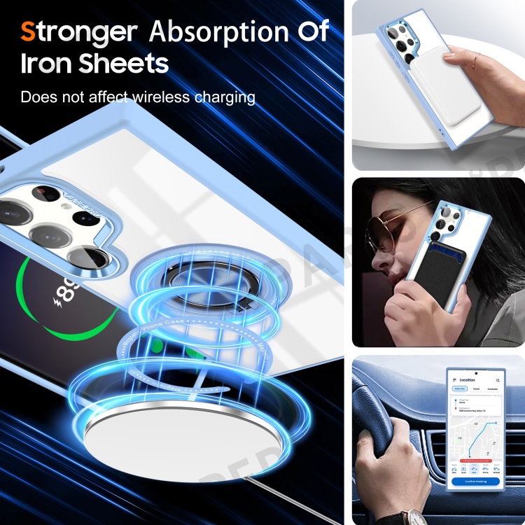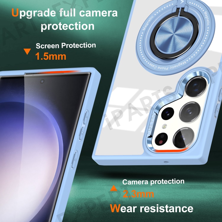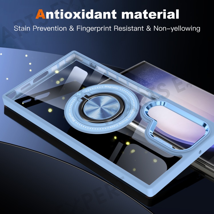 For Samsung Galaxy S23 Ultra Magnetic Case PC+TPU Clear Phone Cover with Ring Kickstand - Baby Blue