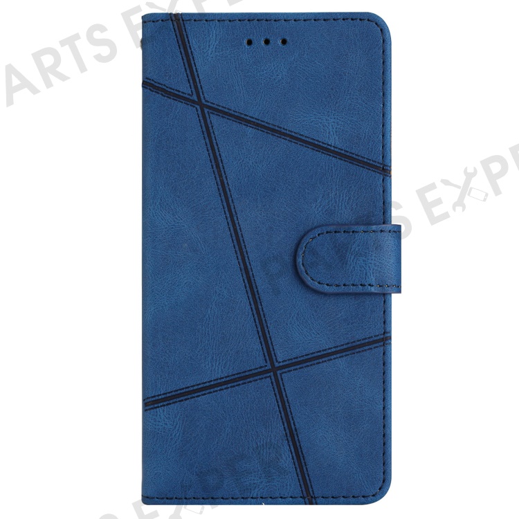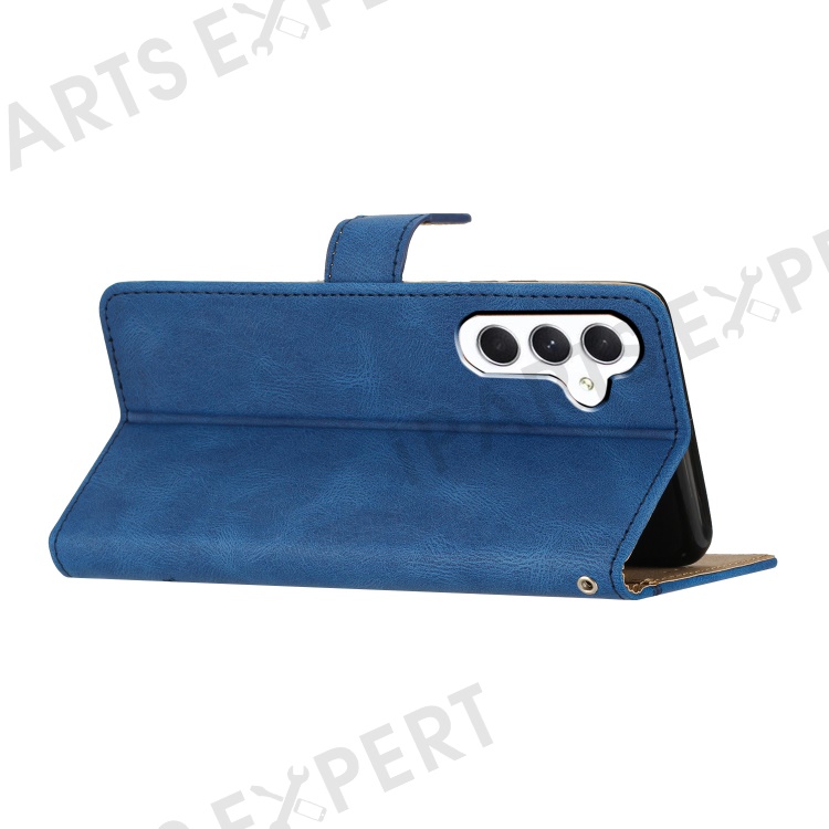 For Samsung Galaxy S23 FE Phone Cover Crazy Horse Texture Imprinted Lines Shell PU Leather Phone Stand Case Wallet - Blue