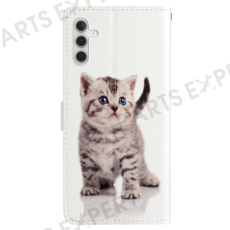 For Samsung Galaxy S23 FE PU Leather Phone Case Wallet Stand Pattern Printing Cover with Strap - Cute Cat