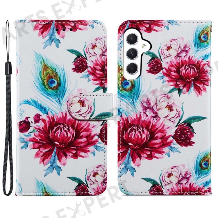 For Samsung Galaxy S23 FE PU Leather Phone Case Wallet Stand Pattern Printing Cover with Strap - Peacock Flower