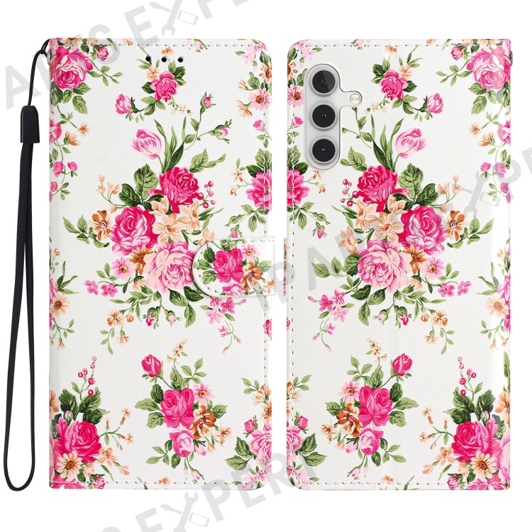 For Samsung Galaxy S23 FE PU Leather Phone Case Wallet Stand Pattern Printing Cover with Strap - Red Flowers