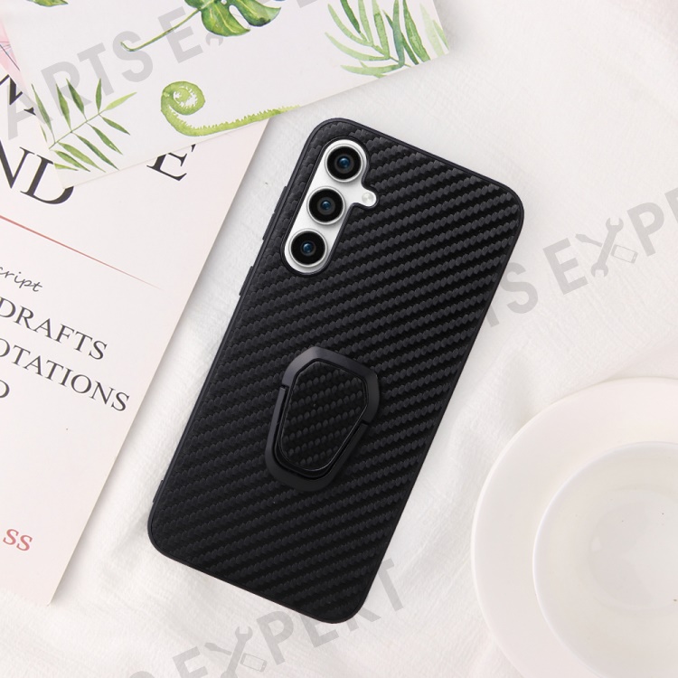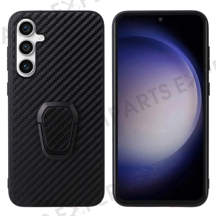 For Samsung Galaxy S23 FE PU Leather+TPU+PC Phone Cover Kickstand Cell Phone Back Case - Carbon Fiber Texture