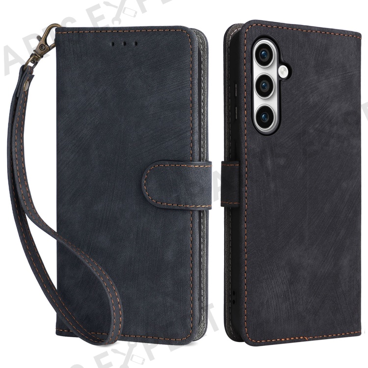 For Samsung Galaxy S23 FE RFID Blocking Wallet Stand PU Leather Case Cell Phone Cover with Strap - Black