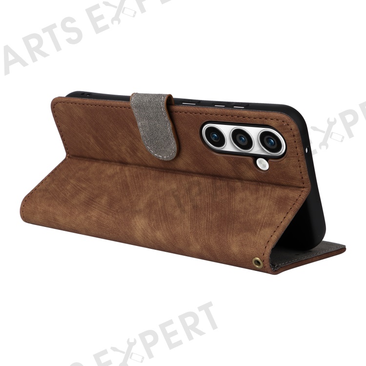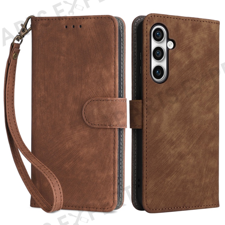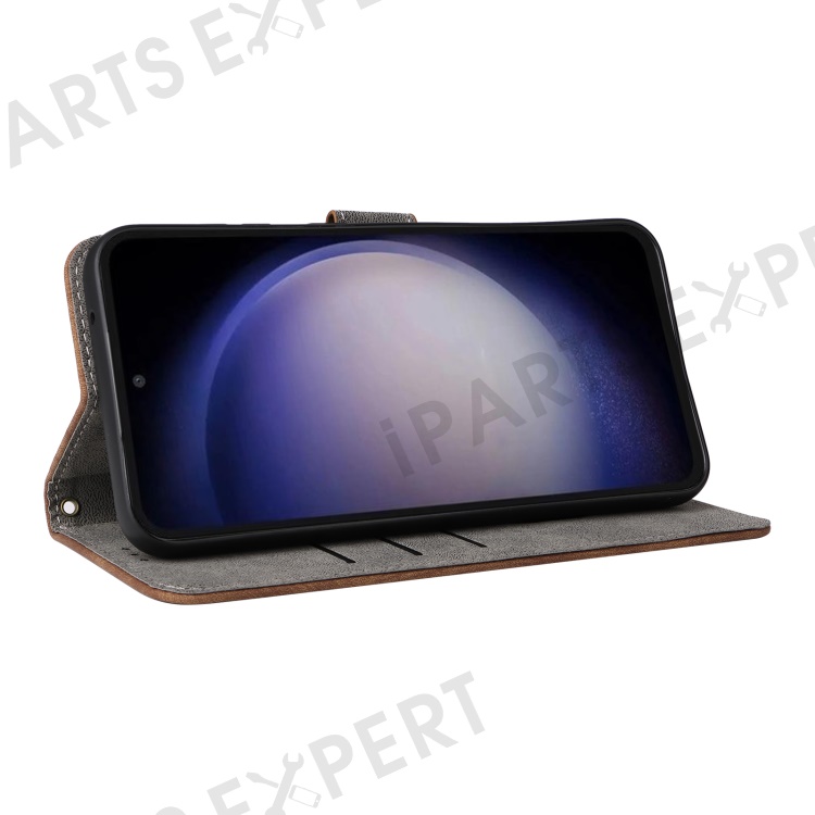For Samsung Galaxy S23 FE RFID Blocking Wallet Stand PU Leather Case Cell Phone Cover with Strap - Brown