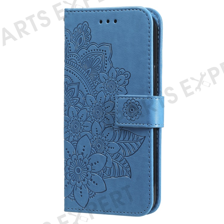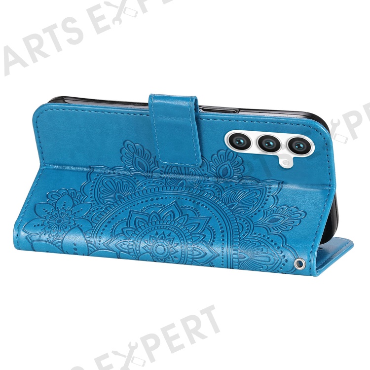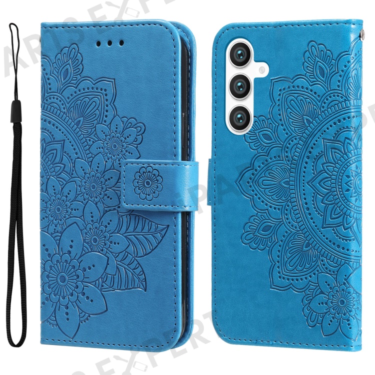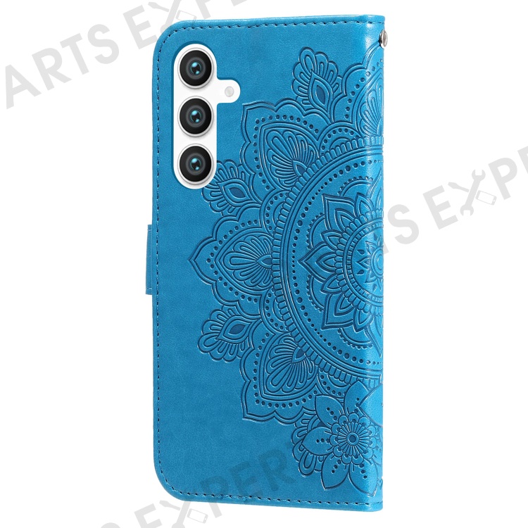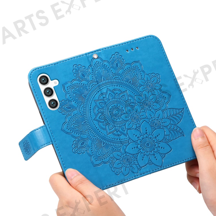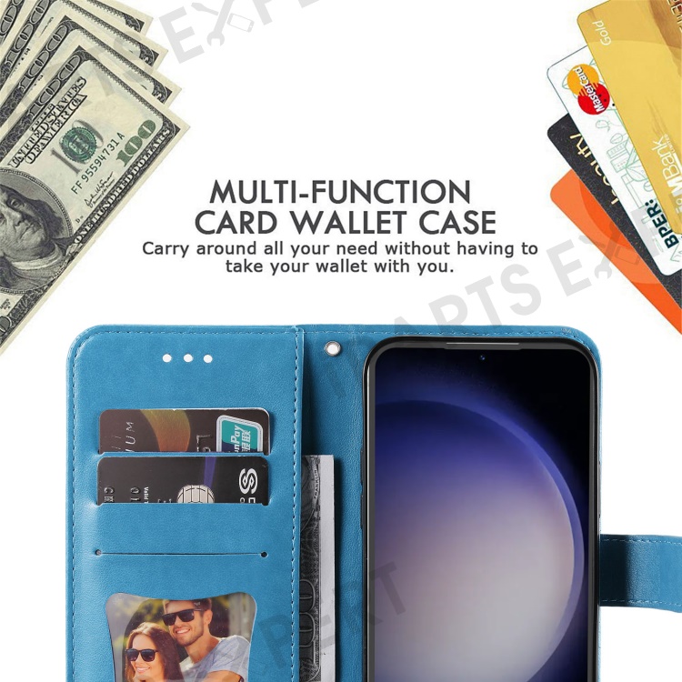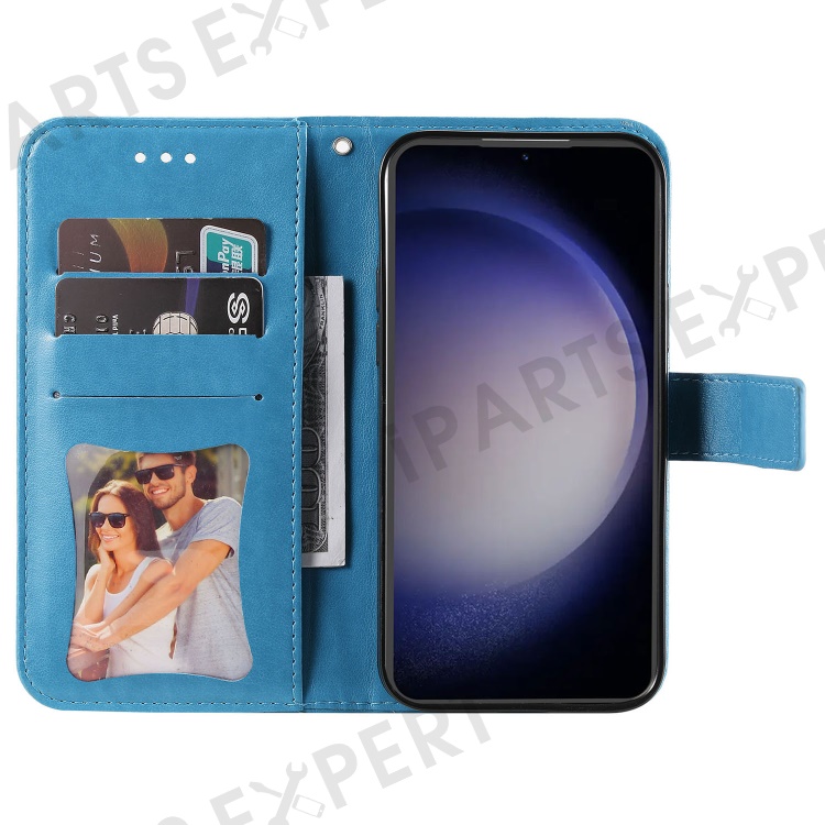 For Samsung Galaxy S23 FE Case Floral Pattern PU Leather Wallet Stand Phone Cover - Blue