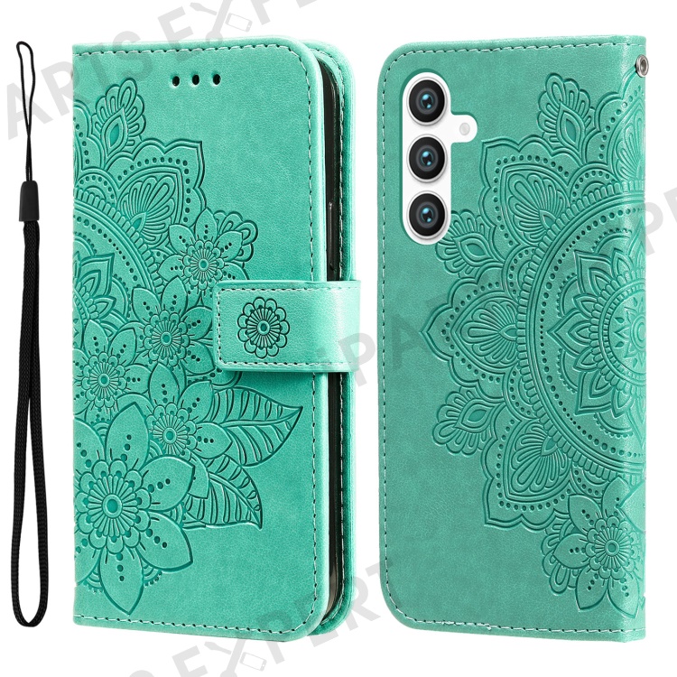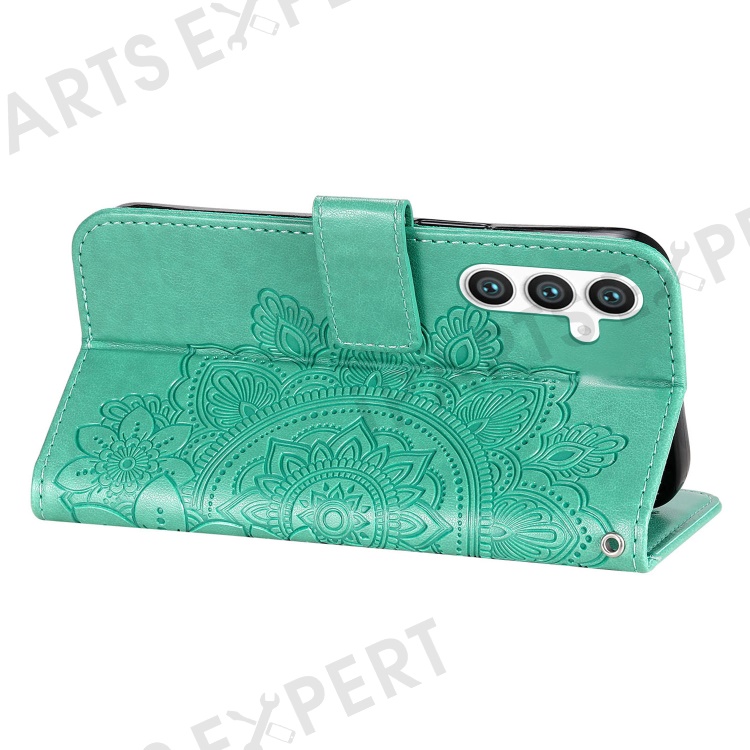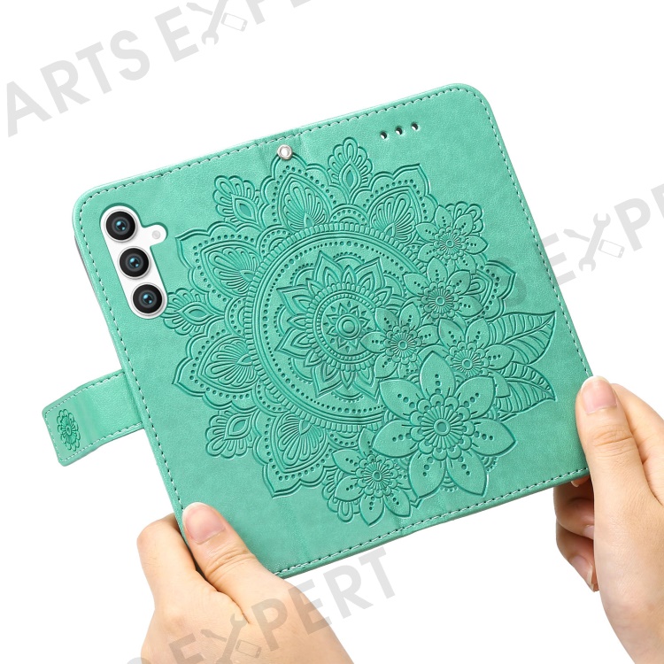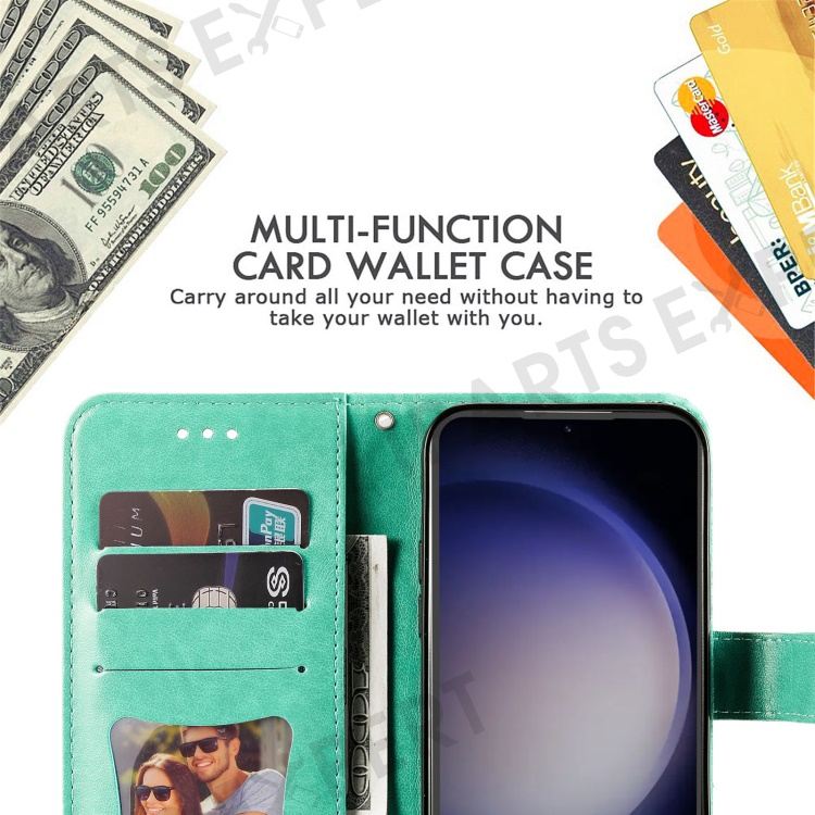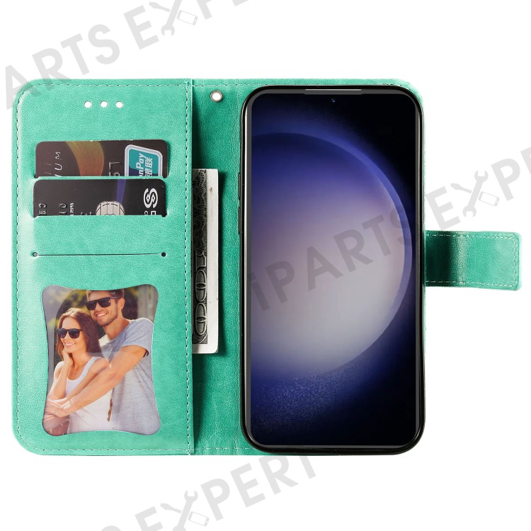 For Samsung Galaxy S23 FE Case Floral Pattern PU Leather Wallet Stand Phone Cover - Green