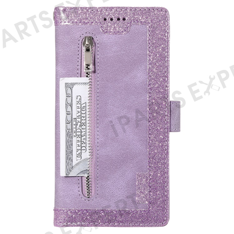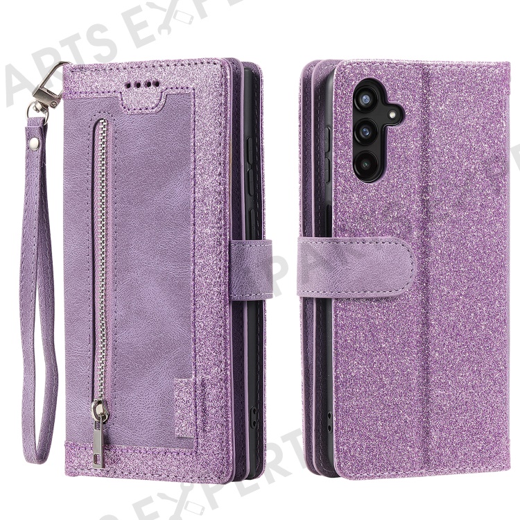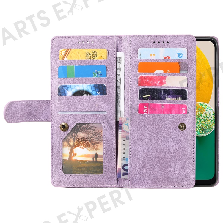 For Samsung Galaxy S23 FE Zipper Pocket PU Leather Phone Case 9 Card Slots Protective Cover - Purple