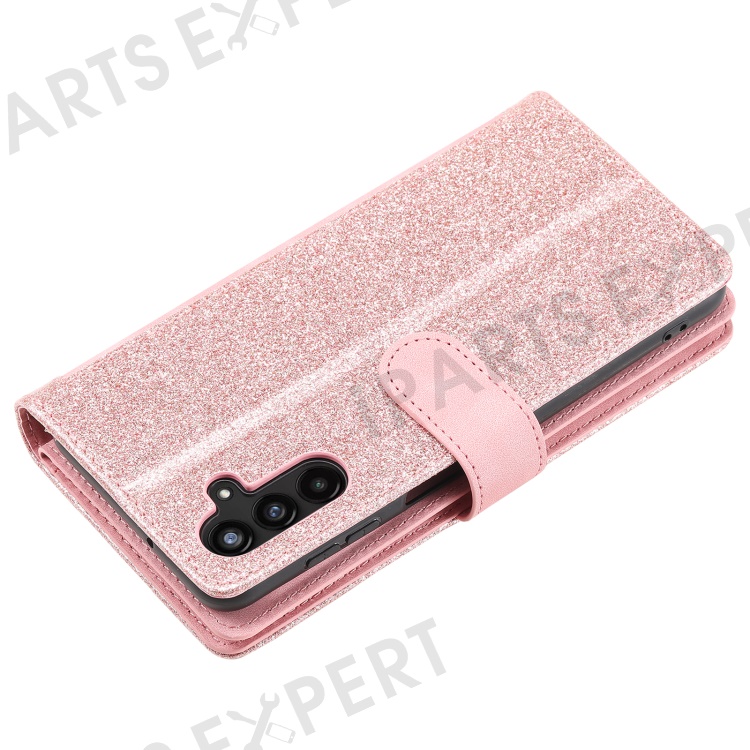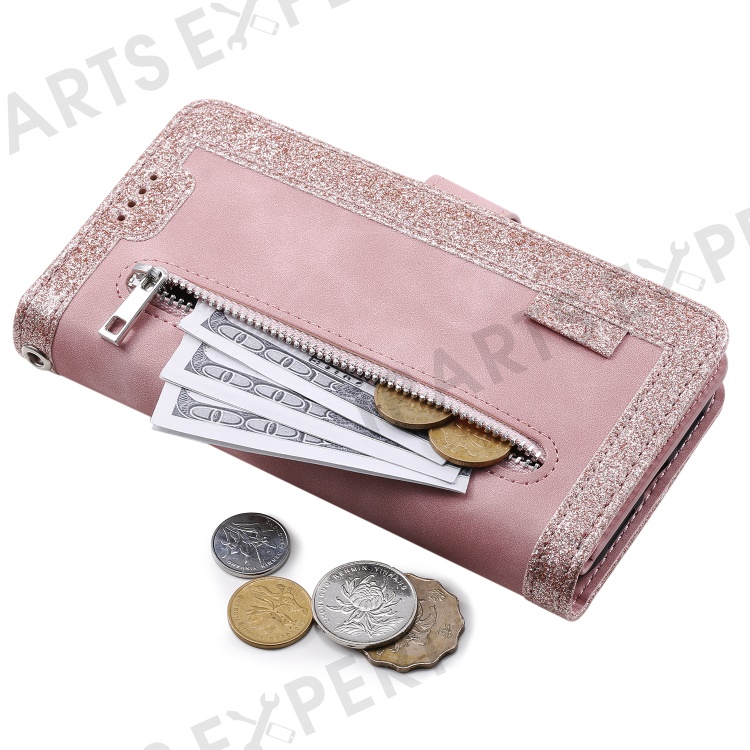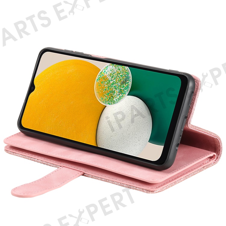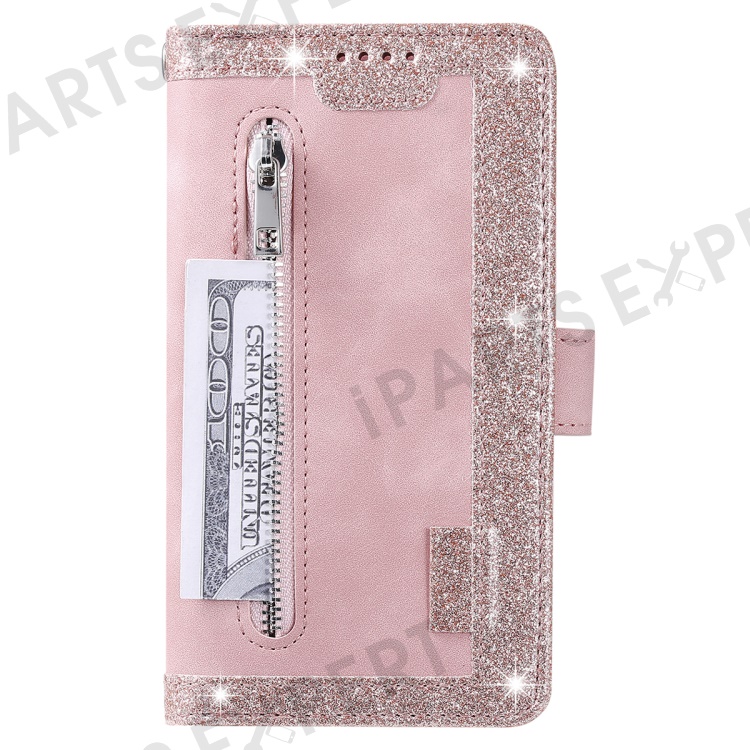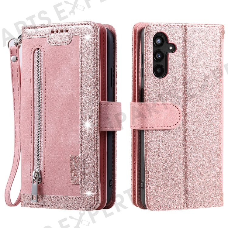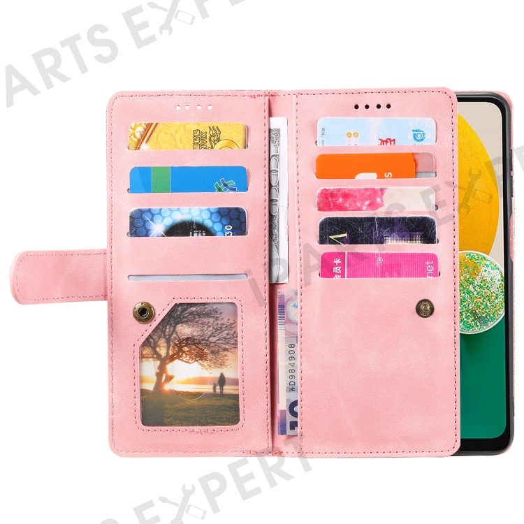 For Samsung Galaxy S23 FE Zipper Pocket PU Leather Phone Case 9 Card Slots Protective Cover - Rose Gold